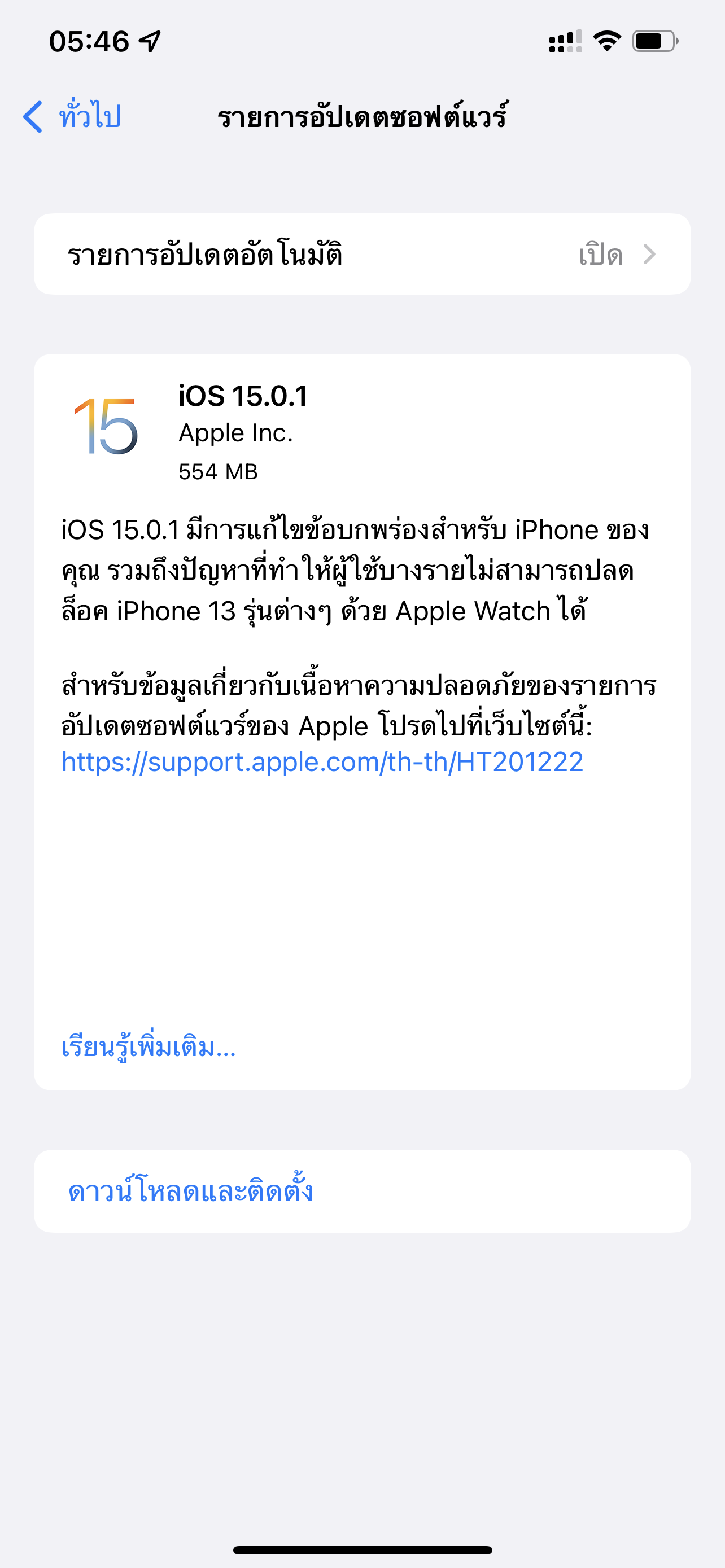 iOS 15.0.1 มาแล้ว! แก้ปัญหาขึ้นความจุเต็ม, แก้ปลดล็อค iPhone ด้วย Apple Watch ใน iPhone 13 ไม่ได้