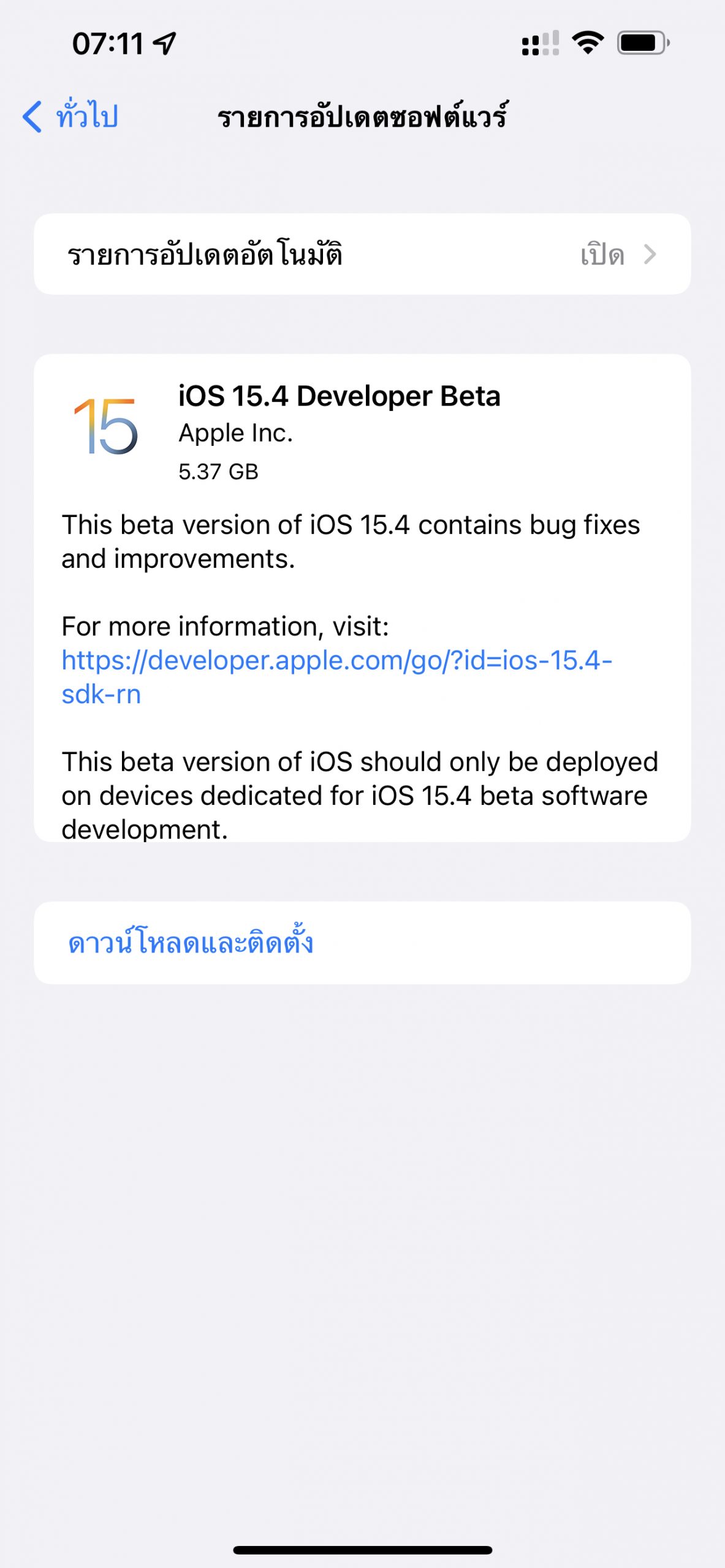 iOS 15.4 ตอนนี้ยังเป็นเวอร์ชัน Beta คือ เป็นเวอร์ชันทดสอบสำหรับนักพัฒนา เวอร์ชันสำหรับผู้ใช้ทั่วไปจะปล่อยให้อัปเดตภายหลัง
