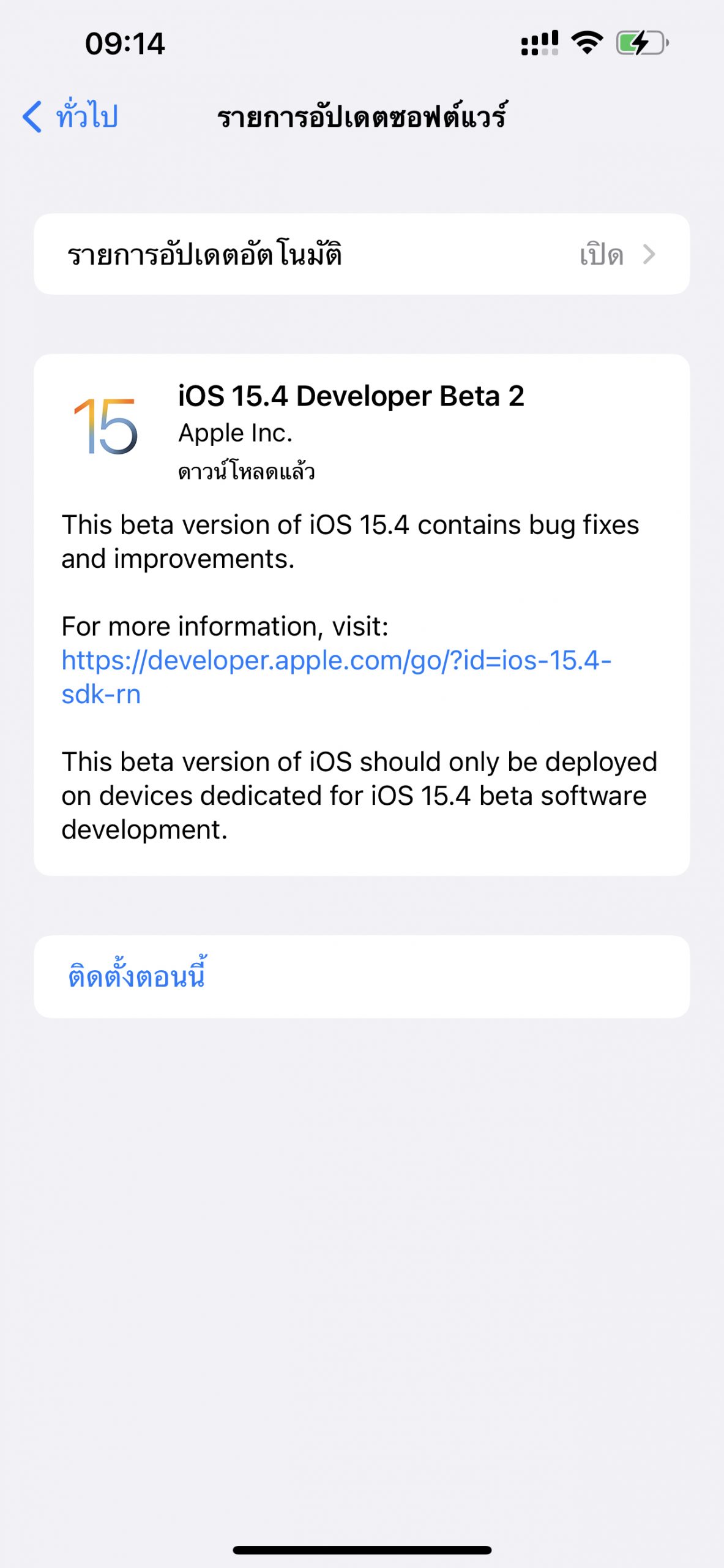 iOS 15.4 ตอนนี้ยังเป็นเวอร์ชัน Beta คือ เป็นเวอร์ชันทดสอบสำหรับนักพัฒนา เวอร์ชันสำหรับผู้ใช้ทั่วไปจะปล่อยให้อัปเดตภายหลัง