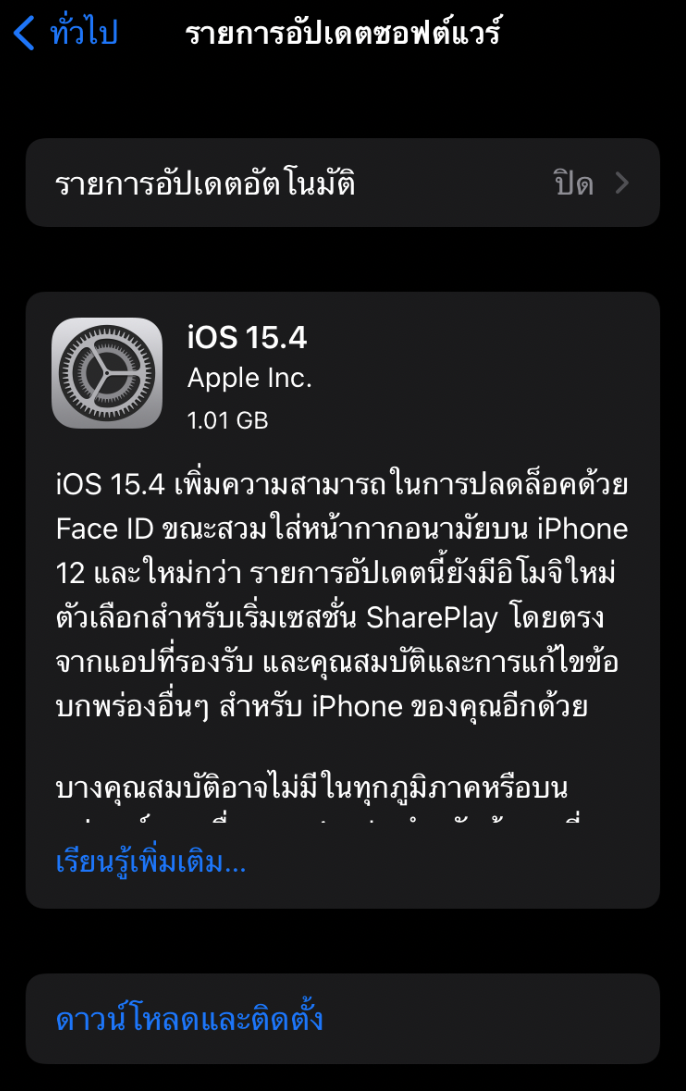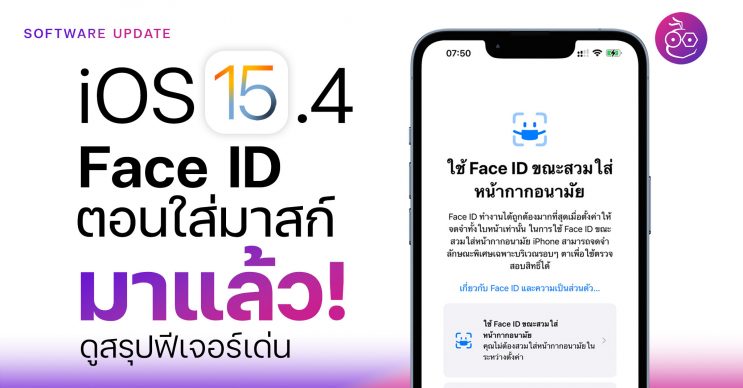 Apple ได้ปล่อย iOS 15.4 ให้ผู้ใช้ทั่วไปได้อัปเดตแล้ว! มาพร้อมฟีเจอร์สำคัญอย่าง สแกนหน้า (Face ID) ตอนใส่หน้ากากอนามัย และฟีเจอร์ใหม่อีกเพียบ ดูสรุปกันได้เลย