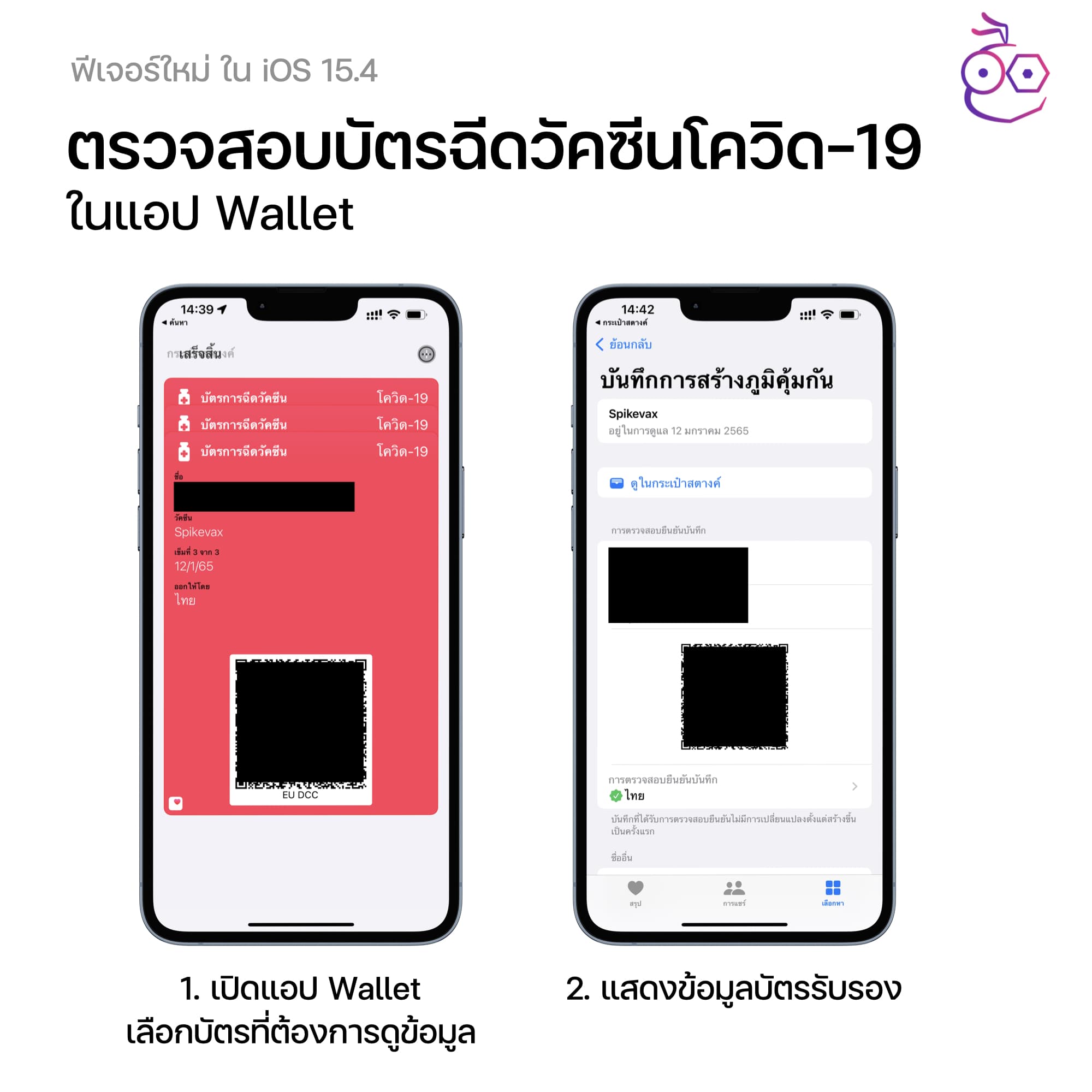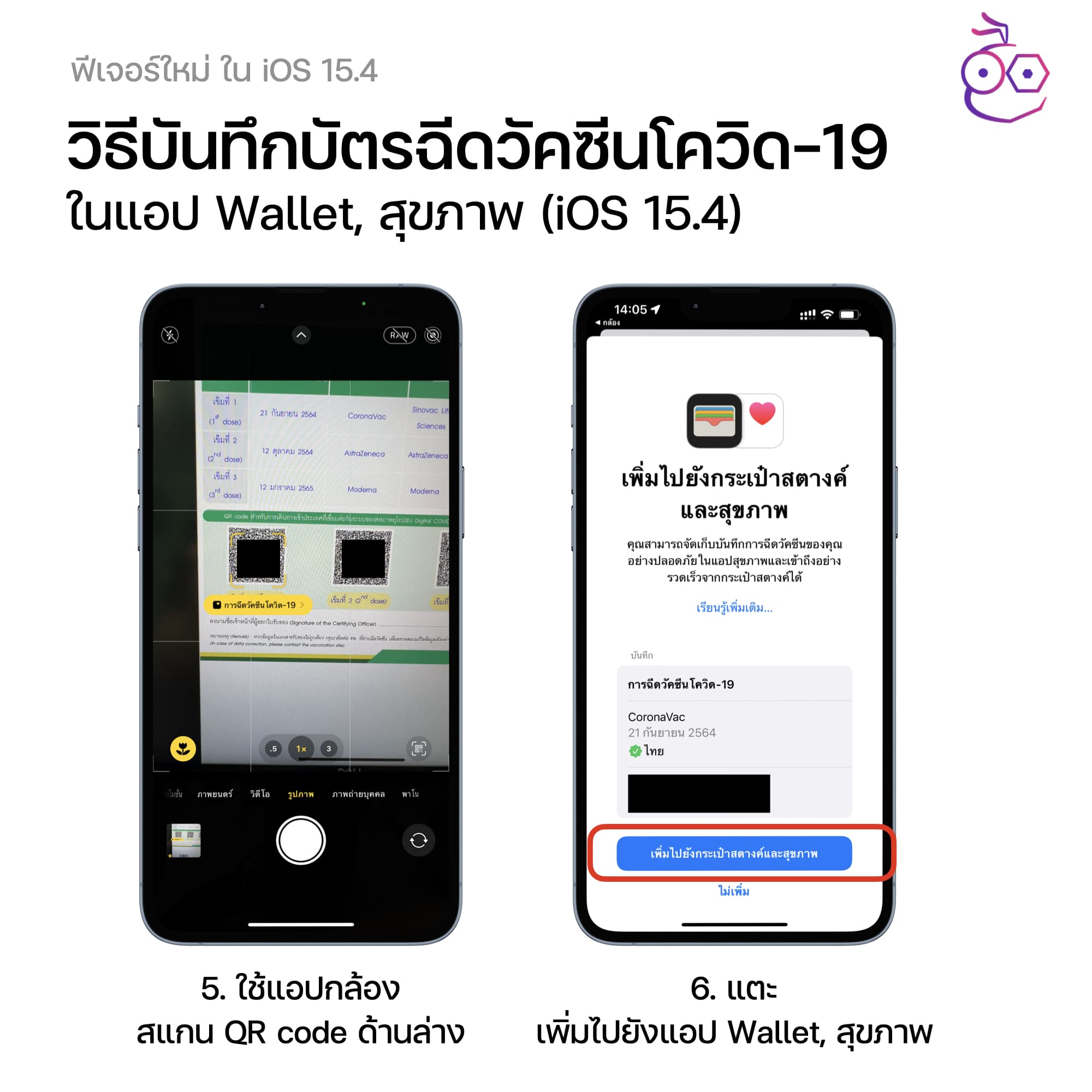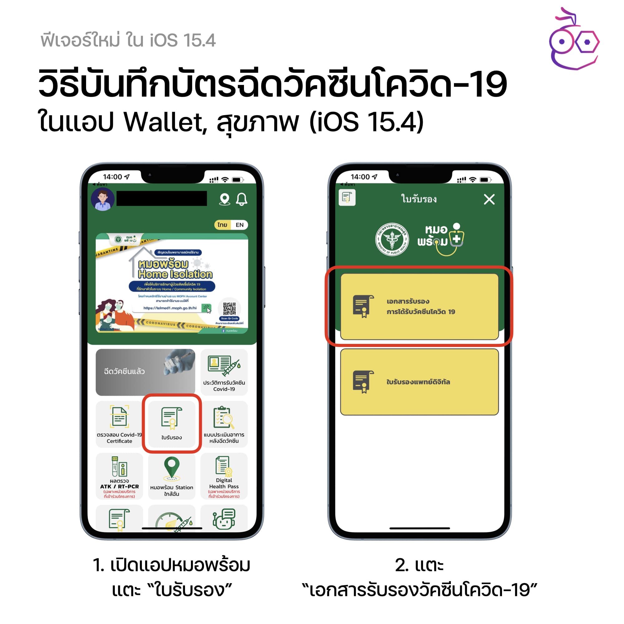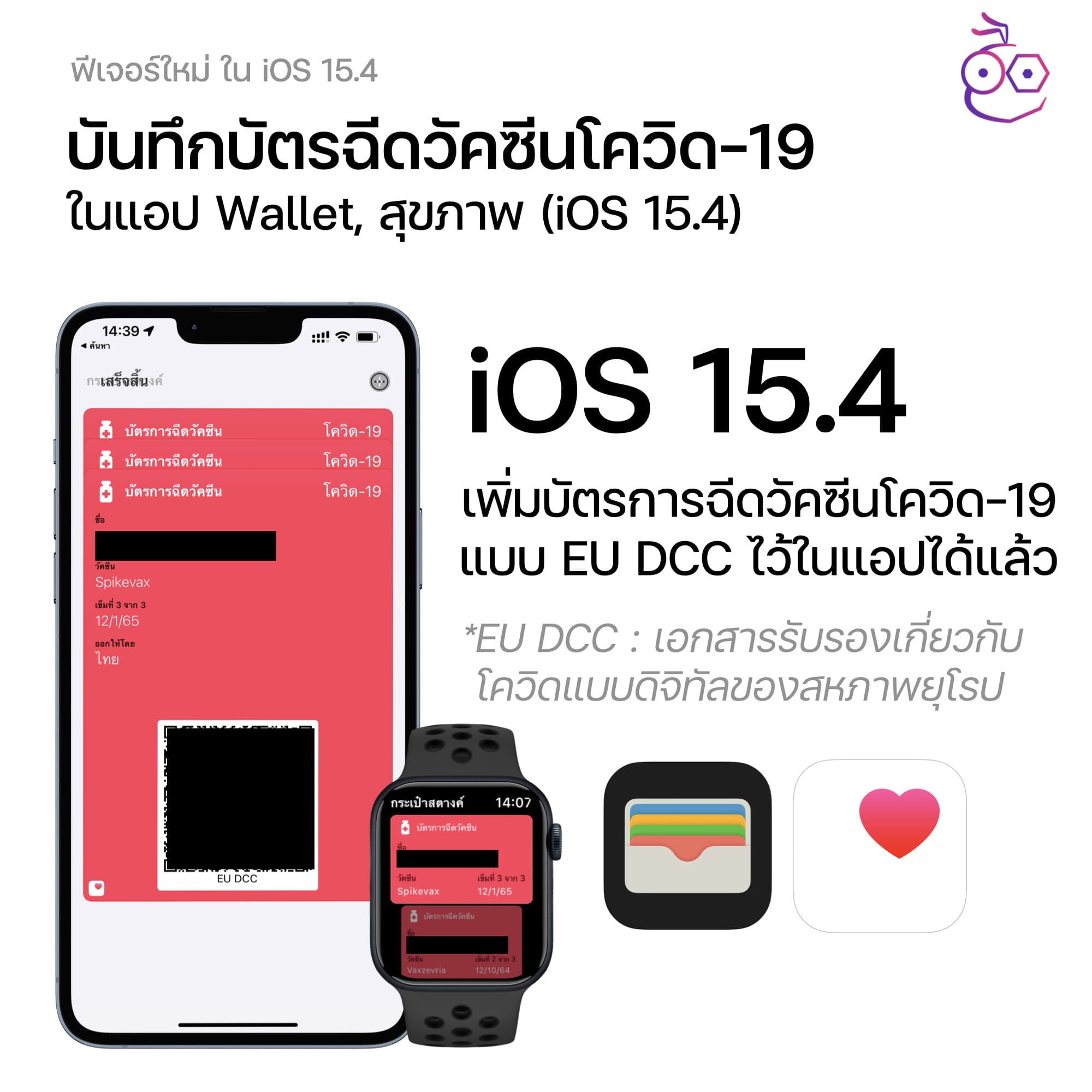 เมื่อเราอัปเดต iPhone ของเราให้เป็น iOS 15.4 เราจะสามารถเพิ่มบัตรการฉีดวัคซีนที่เป็นประวัติการฉีดวัคซีน COVID-19 ลงไปในแอปกระเป๋าสตางค์ (Wallet) และแอปสุขภาพ (Health) ได้แล้ว มาดูสิ่งที่ต้องมีกันก่อน