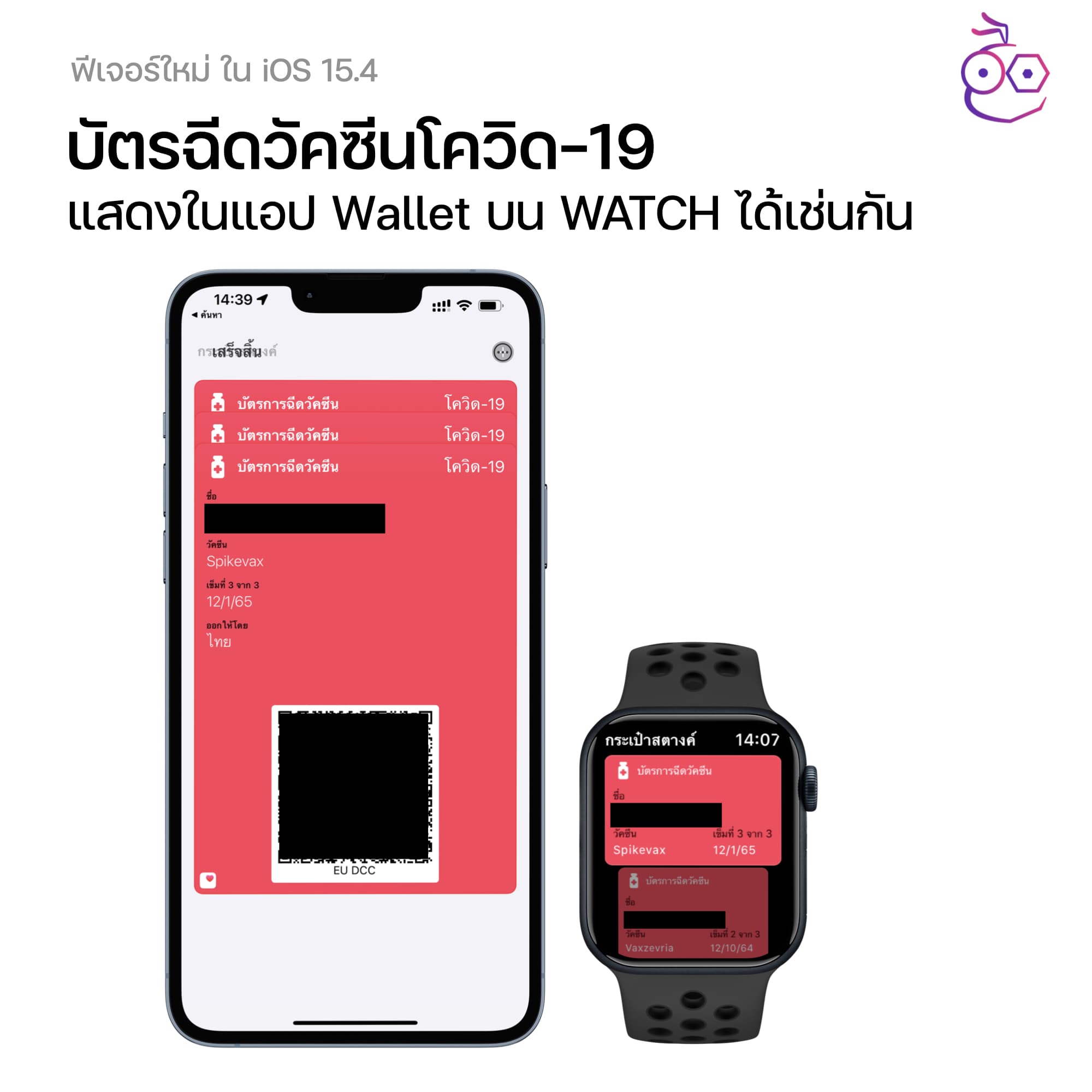นอกจากนี้ ผู้ใช้ Apple Watch ยังสามารถตรวจสอบบัตรฉีดวัคซีนโควิด-19 ที่เพิ่มเอาไว้ โดยการเปิดดูในแอป Wallet ที่อยู่บน Apple Watch ได้ด้วยค่ะ