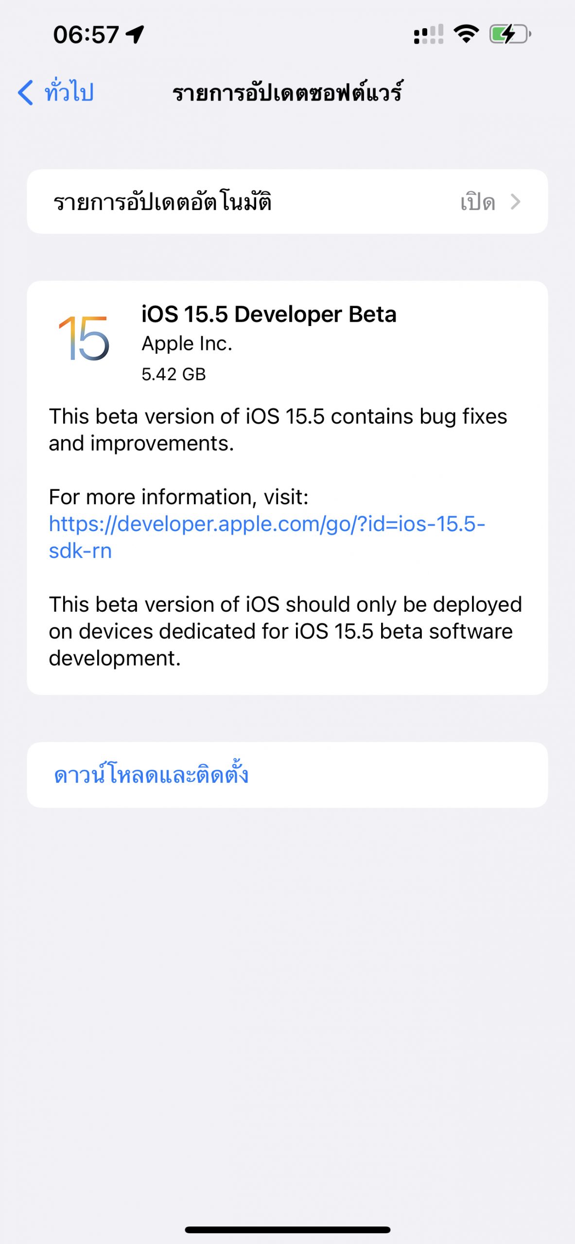 iOS 15.5 ในตอนนี้ยังเป็น Developer Beta เวอร์ชันทดสอบสำหรับนักพัฒนาอยู่ จึงไม่เหมาะกับผู้ใช้ทั่วไปที่จะติดตั้งเวอร์ชันนี้เพราะอาจเจอปัญหาต่าง ๆ มากมาย