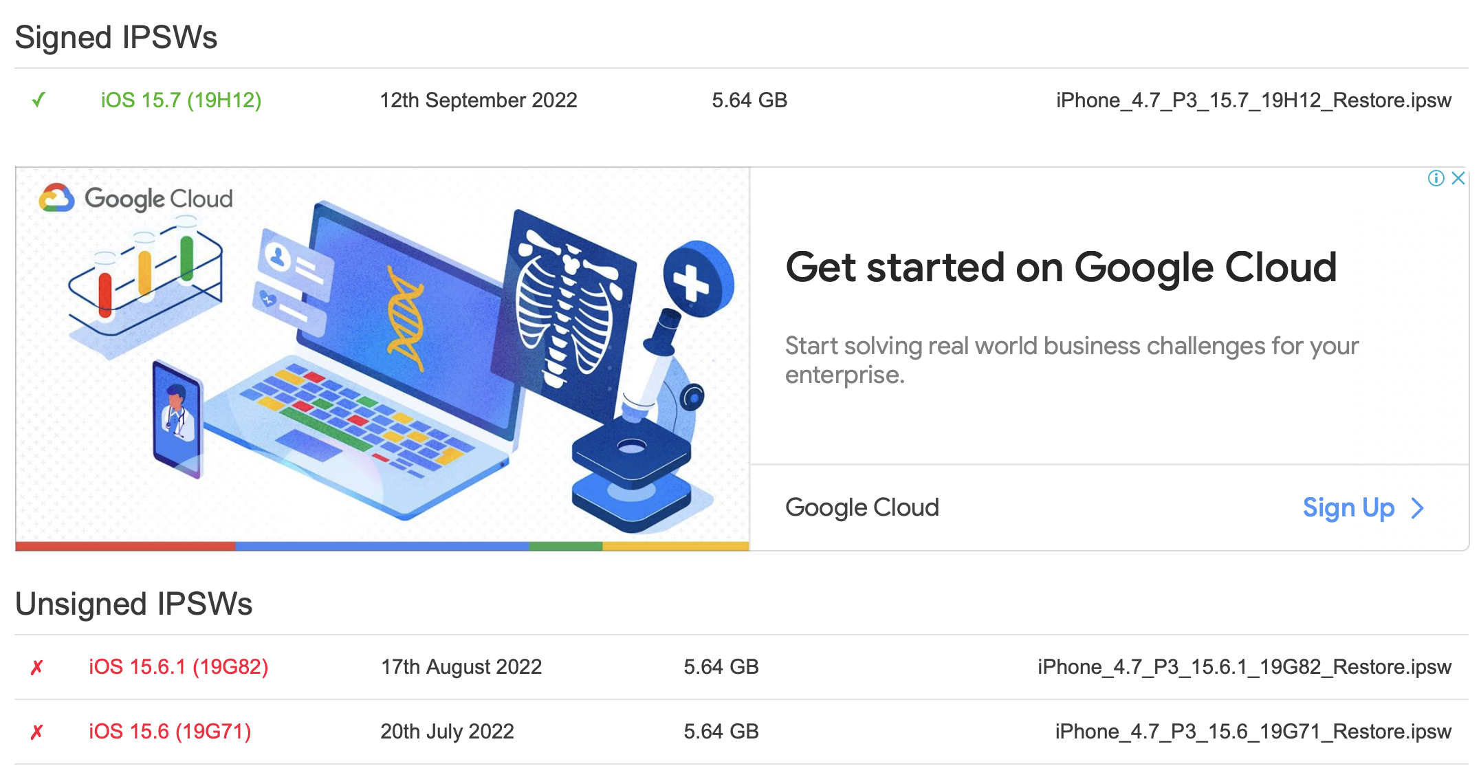 นั่นหมายความว่าผู้ใช้ ไม่สามารถ Downgrade, Signing, Restore หรือติดตั้ง Firmware iOS 15.6.1 (iPadOS 15.6.1) ได้ โดยในตอนนี้สามารถติดตั้งได้เพียง iOS 15.7 เท่านั้น (15 ส.ค. 65)