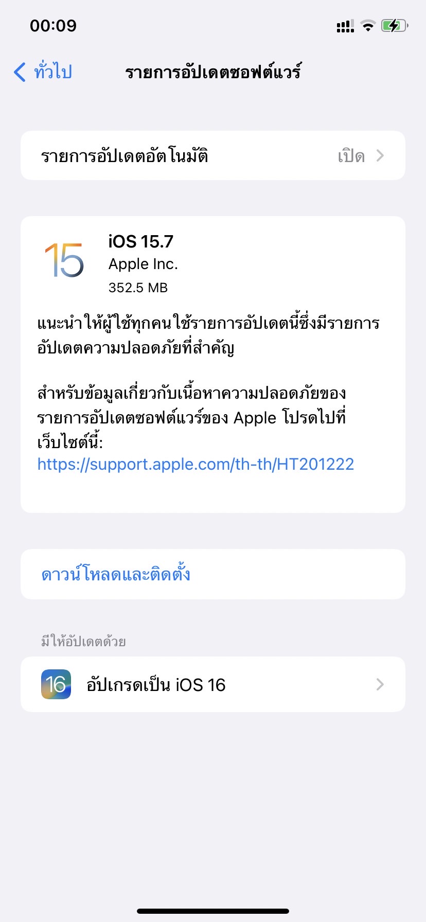 - ถ้าอยากอัปเดตเป็น iOS 16 ตัวใหม่ล่าสุด ให้กดอัปเดตเป็น iOS 16 ด้านล่างได้เลย โดยไม่จำเป็นต้องกดอัปเดต iOS 15.7 ก่อน, ส่วนใครที่กดอัปเดตเป็น iOS 15.7 ไปแล้วก็รออัปเดตจนเสร็จ แล้วค่อยมากดอัปเดตเป็น iOS 16 อีกรอบก็ได้!