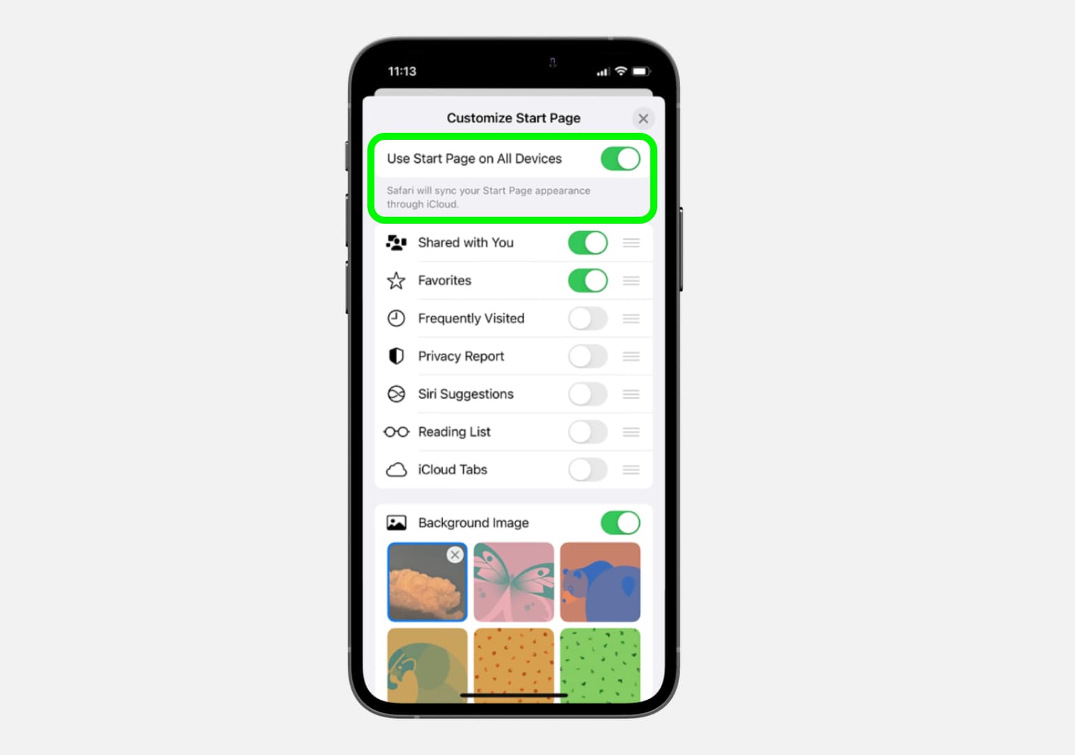 นอกจากนี้เราสามารถเลื่อนเปิด “Use Start Page on All Devices” เพื่อให้การตั้งค่า Safari ทั้งหมดที่เราได้ตั้งไว้ตามวิธีด้านบนให้เหมือนกับอุปกรณ์อื่น ๆ ของเราที่ใช้ Apple ID เดียวกันได้