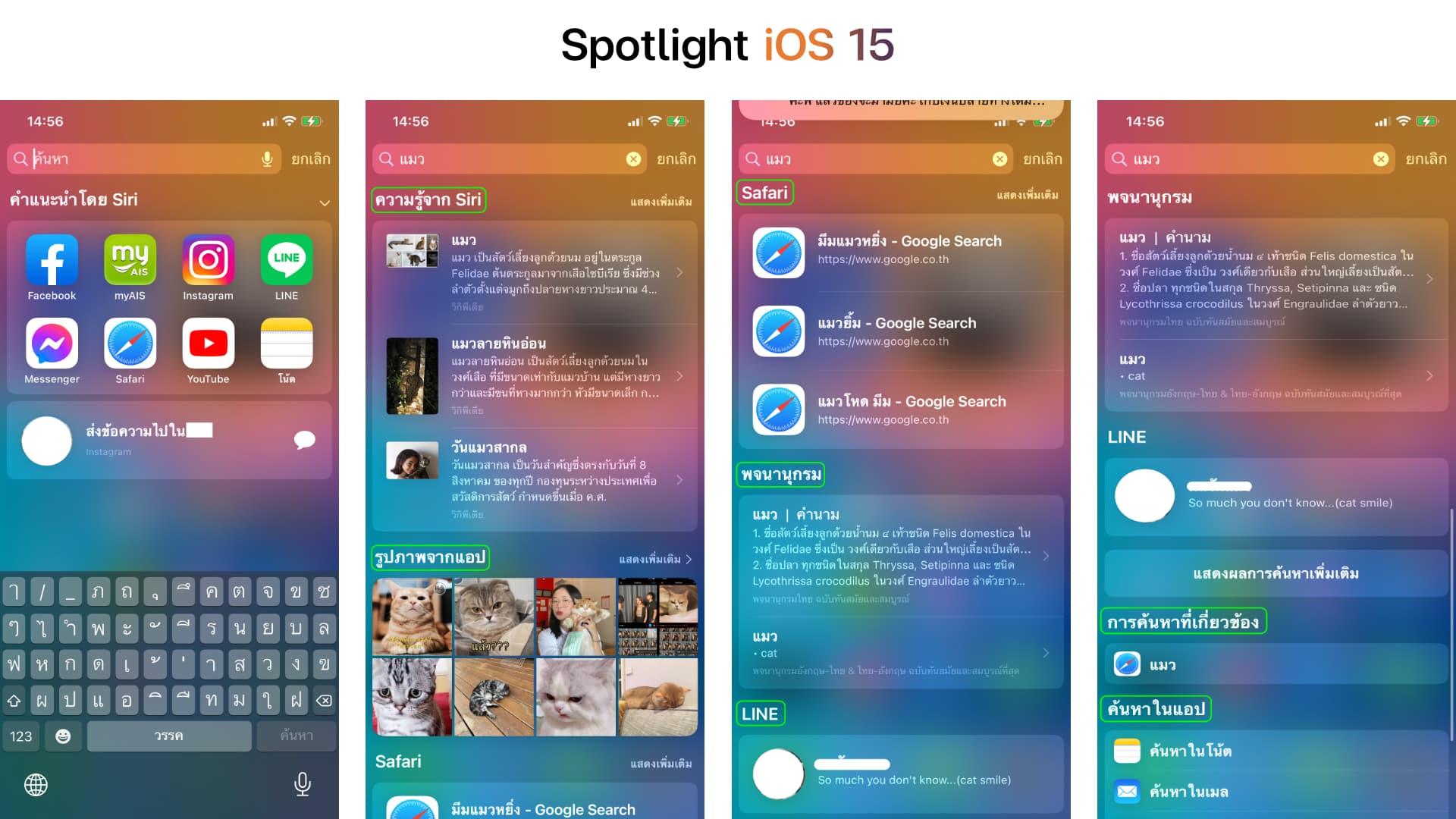 iOS 15 มาพร้อมการปรับปรุงเมนู Spotlight ให้มีความฉลาดกว่าเดิม เพราะเมนู Spotlight ใน iOS 15 ถูกพัฒนาให้ได้ผลการค้นหาที่มีรายละเอียดมากขึ้น