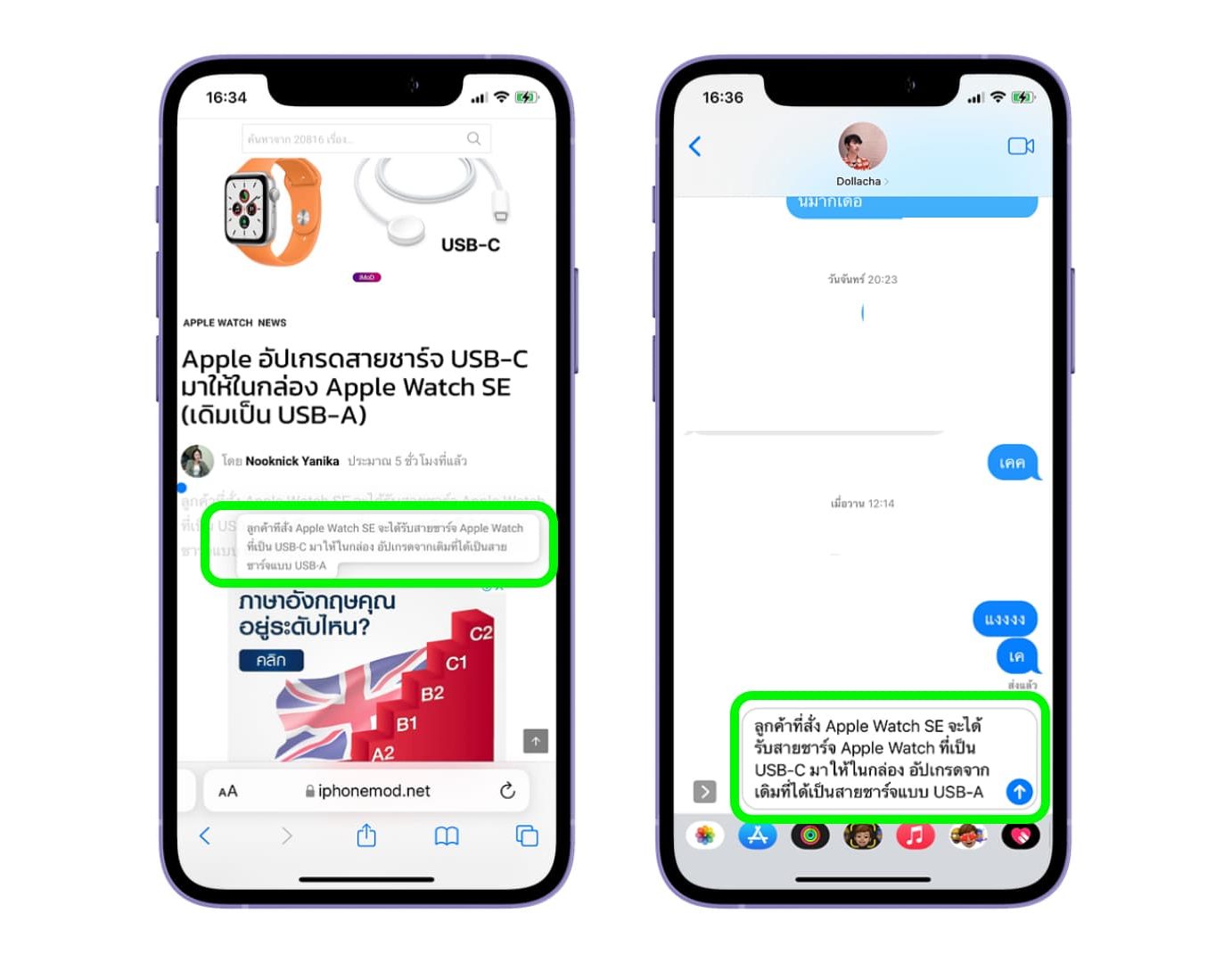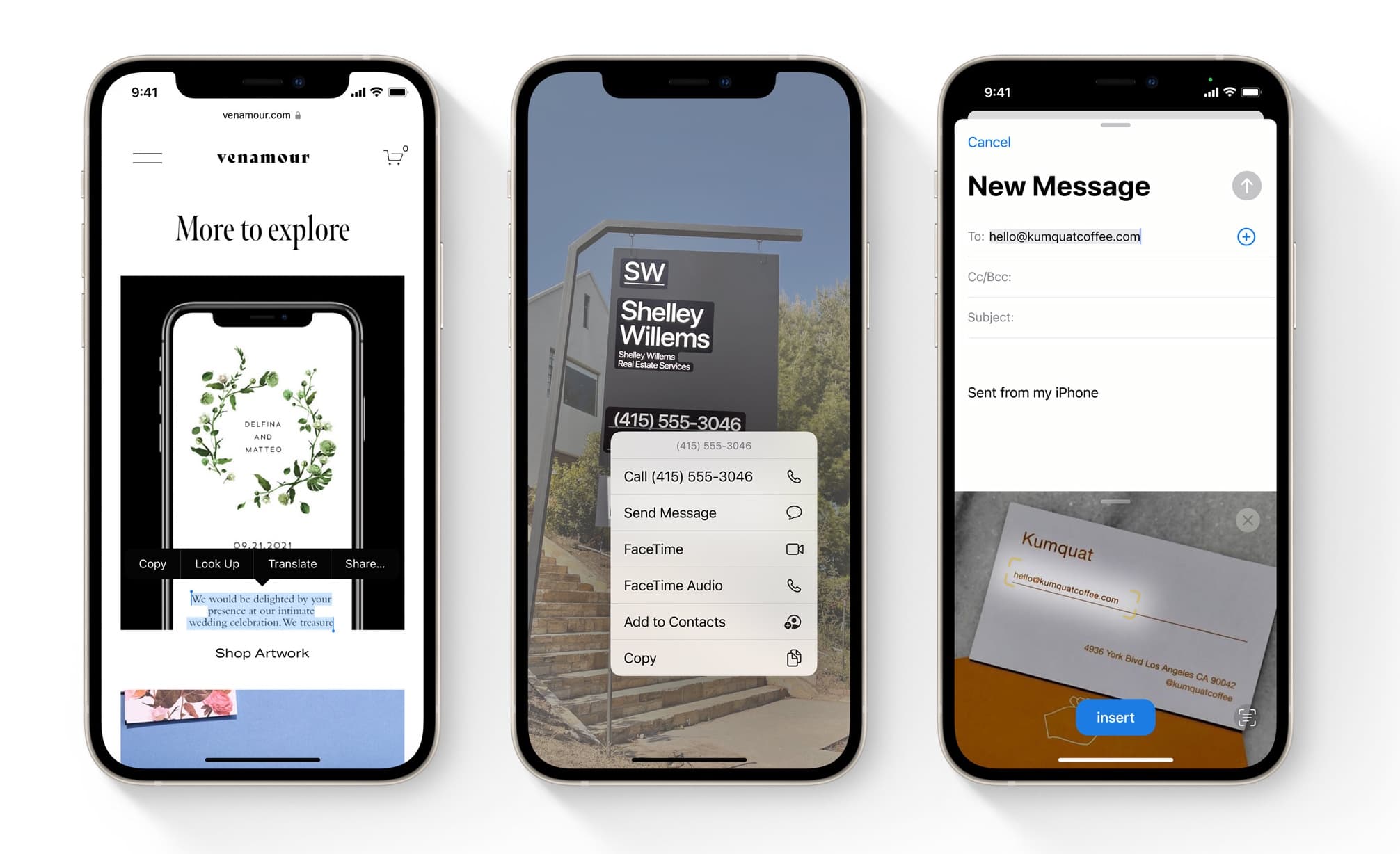 Live Text ตรวจจับข้อความในรูปภาพ หรือใช้กล้องจับไปยังภาพที่มีข้อความ แตะที่ตัวหนังสือในภาพ จะสามารถคัดลอก แปล แชร์ โทรออก หรือกดส่งข้อความก็ทำได้หมด (ใช้ได้กับ iPhone รุ่นใช้ชิป A12 Bionic ขึ้นไป)