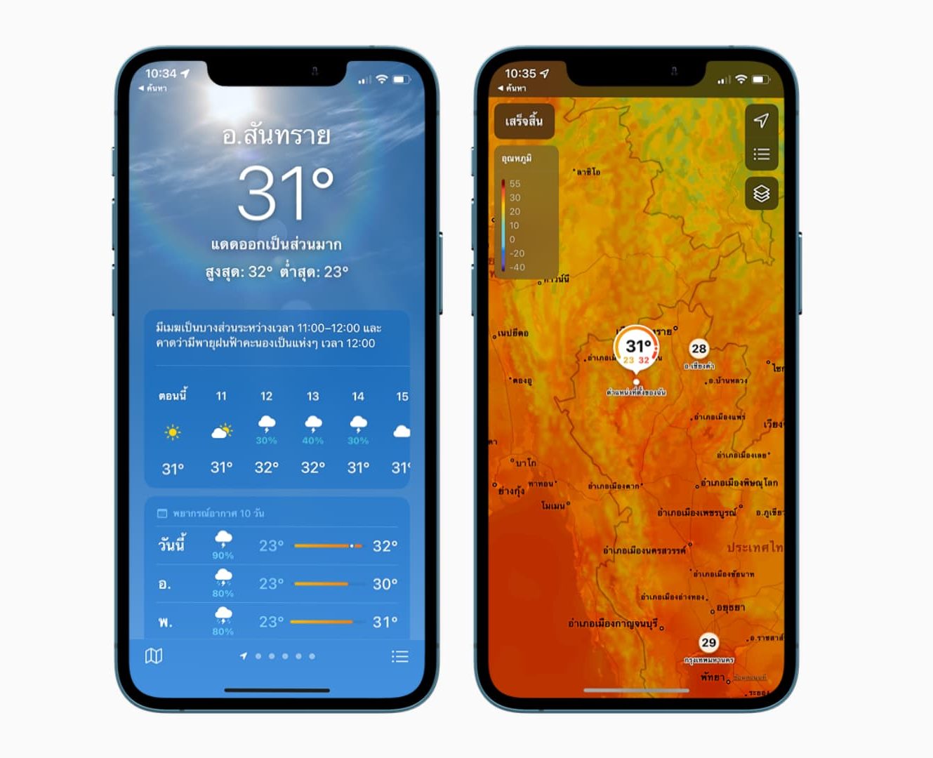 - ภาพพื้นหลังแบบเคลื่อนไหวใหม่ช่วยให้แสดงตำแหน่งดวงอาทิตย์ เมฆ และปริมาณฝนได้แม่นยำมากขึ้น (iPhone XS, iPhone XS Max, iPhone XR ขึ้นไป)