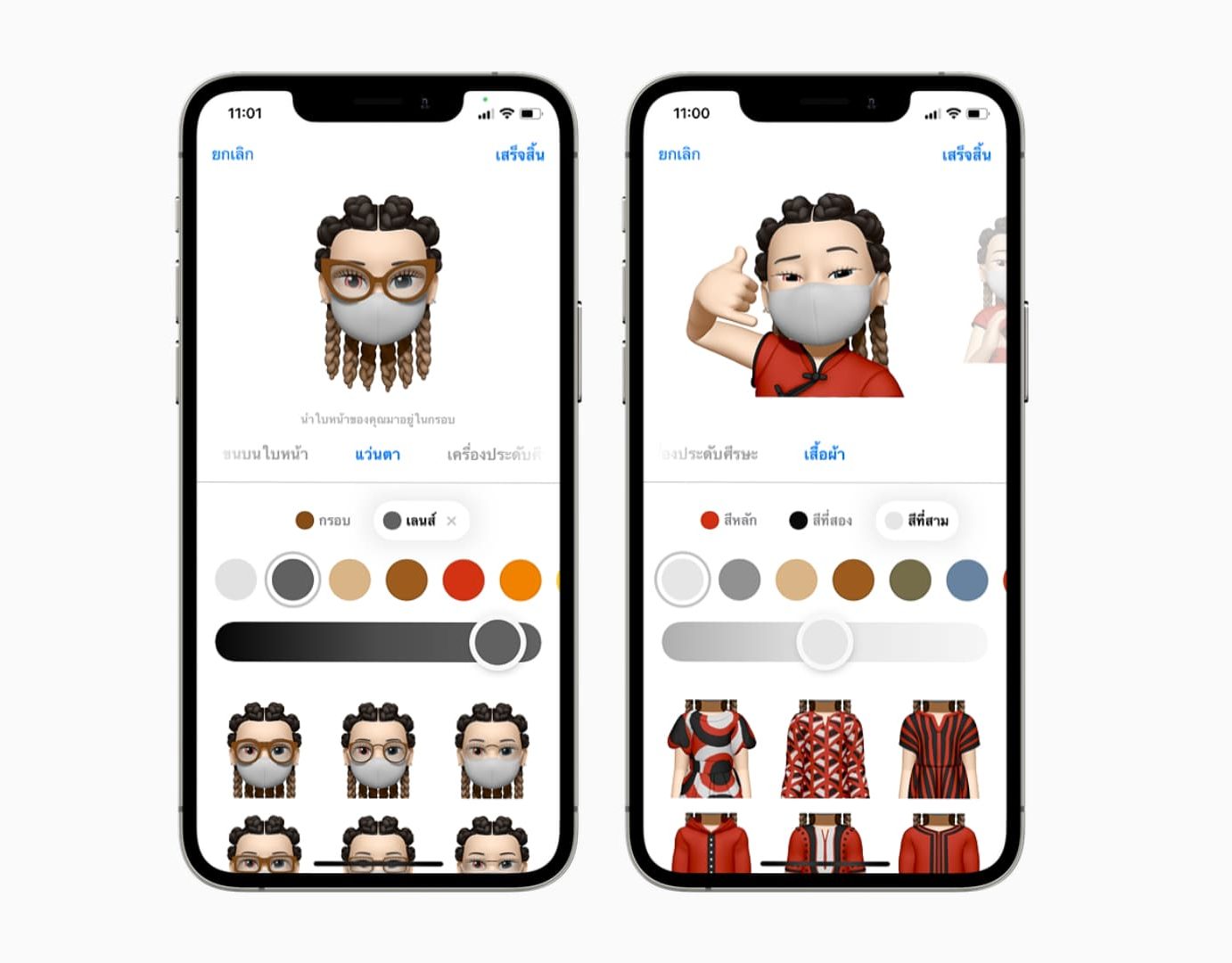มีการเพิ่มไอเท็มตกแต่งตัวละคร Memoji สามารถเปลี่ยนสีตา ทรงผม แว่นตา เสื้อผ้าให้มีความหลากหลายตามแบบฉบับของตัวเองได้เยอะขึ้น