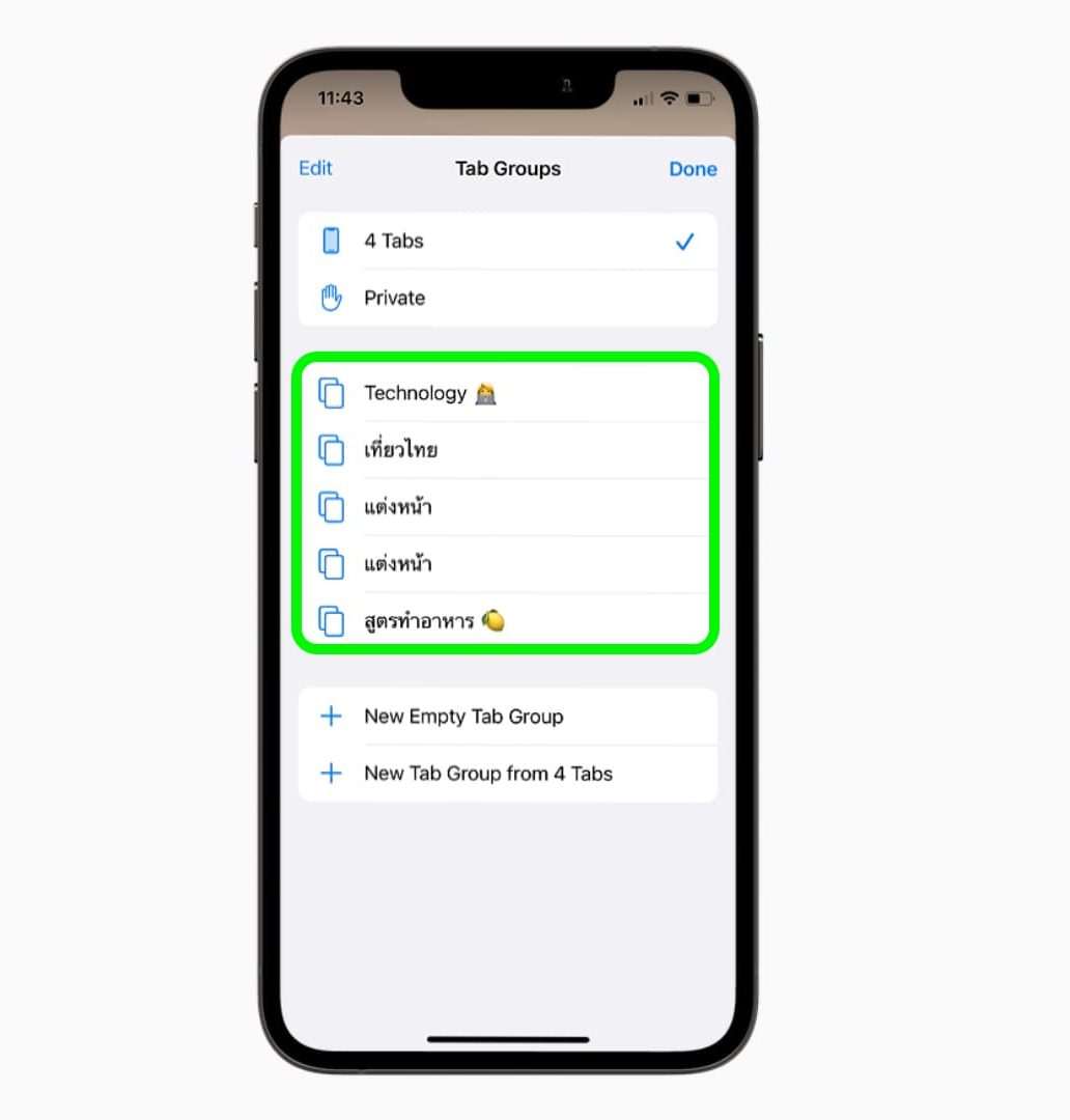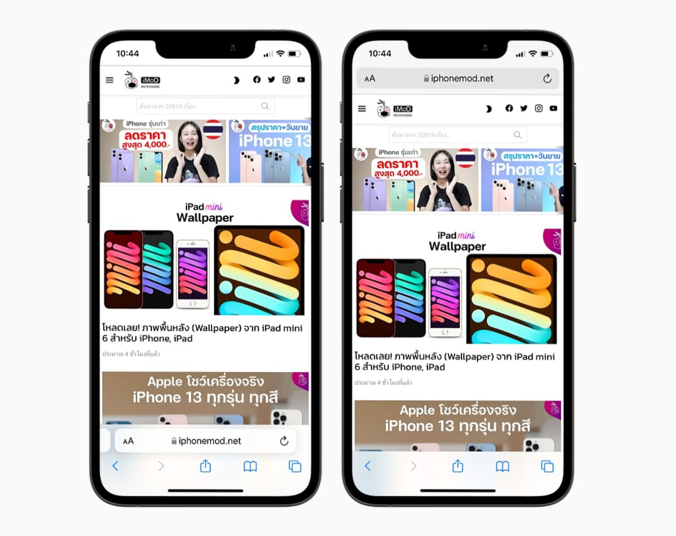แอปซาฟารีมีการปรับดีไซน์ใหม่เพื่อให้ง่ายต่อการใช้งาน สลับไปมาระหว่างแถบหรือหน้าซาฟารีได้ง่ายขึ้น แค่เลื่อนซ้าย หรือเลื่อนขวา