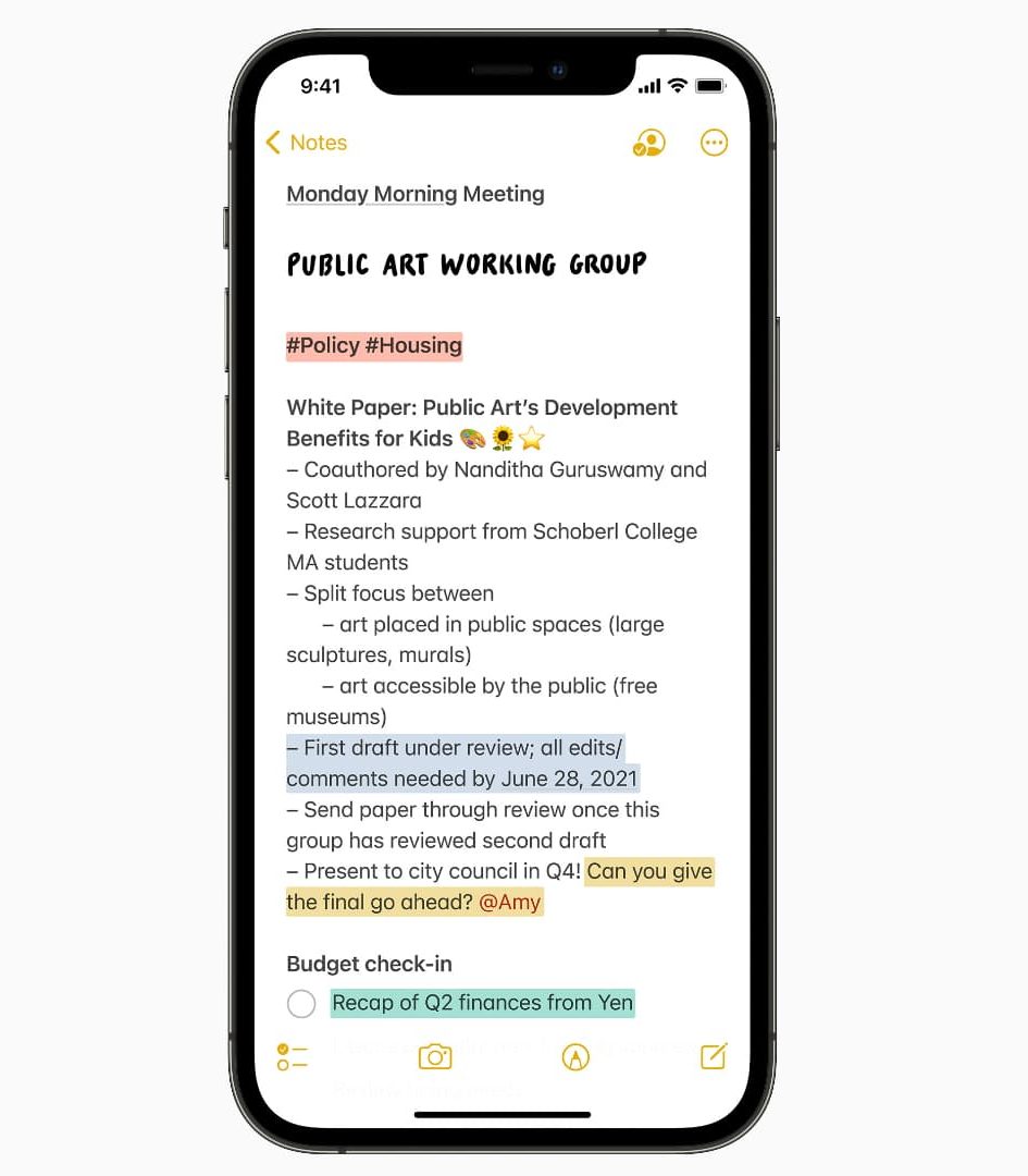 แอปโน้ตเพิ่มแท็กที่ผู้ใช้สร้างเองได้ ช่วยให้จัดประเภทโน้ตได้ง่ายและรวดเร็ว ง่ายต่อการค้นหา มาพร้อมการกล่าวถึงเพื่อแจ้งให้อีกคนทราบเกี่ยวกับการอัปเดตในโน้ตที่แชร์ร่วมกัน