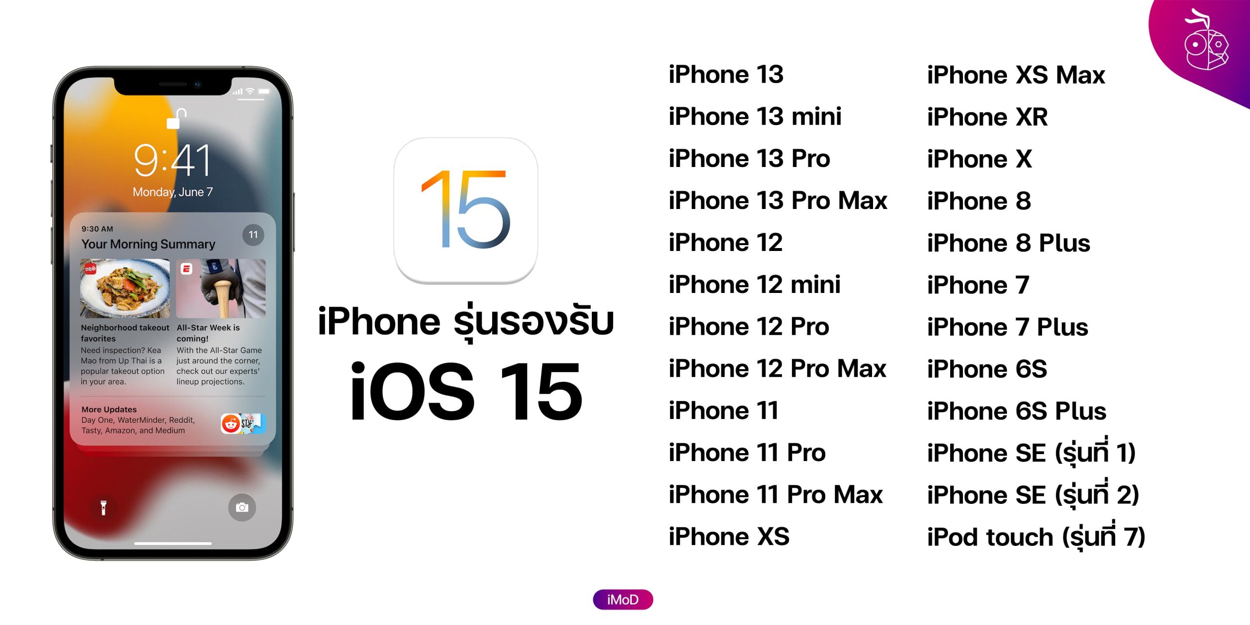 iPhone, iPod touch รุ่นรองรับ iOS 15