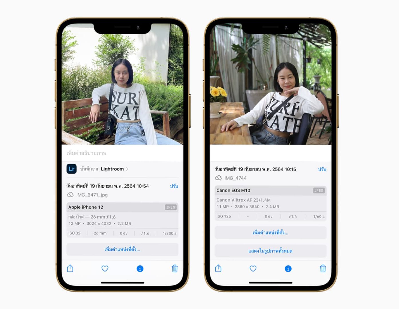 - แผงข้อมูลแสดงข้อมูลที่ครบถ้วนยิ่งขึ้นเกี่ยวกับรูปภาพ เช่น กล้อง เลนส์ ความเร็วชัตเตอร์ ขนาดไฟล์ และอื่นๆ