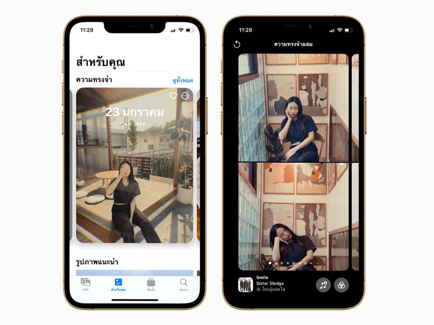 - สามารถเพิ่ม Apple Music ไปยังความทรงจำของคุณสำหรับผู้สมัครใช้บริการ Apple Music ได้ และคำแนะนำเพลงเฉพาะสำหรับคุณจะผสมผสานระหว่างเพลงที่แนะนำโดยผู้เชี่ยวชาญกับรสนิยมทางดนตรีของคุณ รวมถึงสิ่งที่อยู่ในรูปภาพและวิดีโอของคุณด้วย