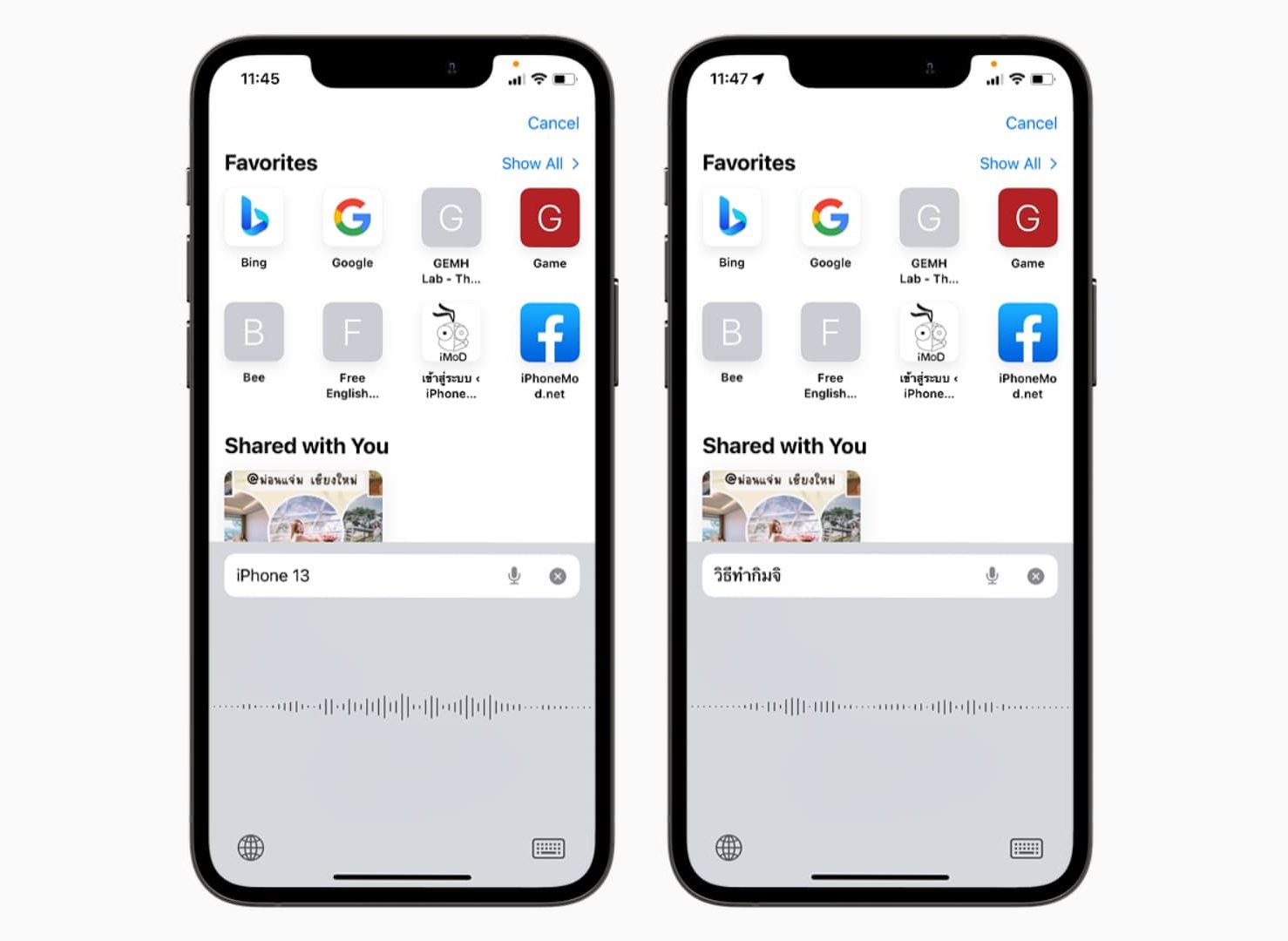 ค้นหาด้วยเสียงบน Safari ได้แล้ว รองรับหลายภาษา แถมยังรองรับภาษาไทยด้วย โดยเปลี่ยนแป้นพิมพ์เป็นภาษาไทยก่อนแล้วค่อยพูดค้นหาด้วยภาษาไทย