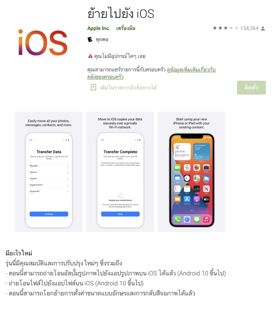 อัปเกรดแอป Move to iOS ย้ายข้อมูลจากมือถือแอนดรอยด์ที่จำเป็นมาได้มากขึ้น เช่น รูปภาพ อัลบั้มรูปภาพ ไฟล์และการตั้งค่าการช่วยการเข้าถึง