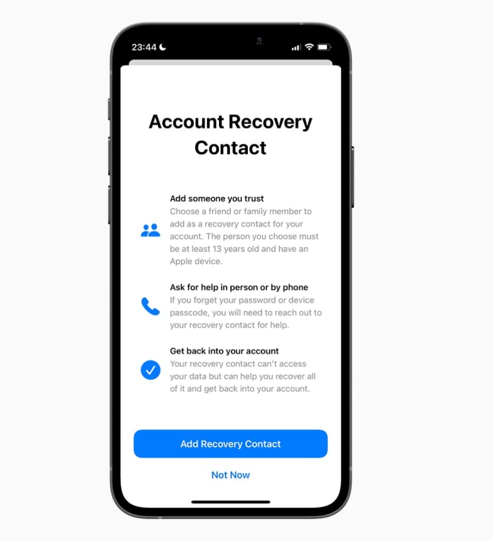 - ผู้ติดต่อการกู้คืนบัญชี Apple ID ช่วยให้คุณเลือกอย่างน้อยหนึ่งคนที่คุณเชื่อถือเพื่อช่วยคุณรีเซ็ตรหัสผ่านของคุณและทำให้คุณเข้าถึงบัญชีของคุณได้อีกครั้ง