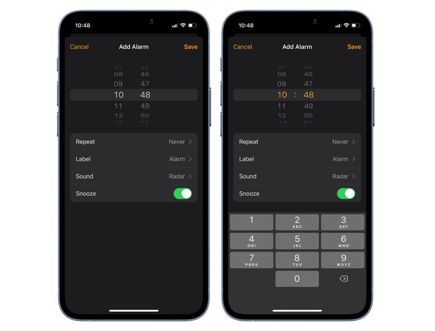ในแอปนาฬิกา ตัวตั้งเวลาแบบหมุนกลับมาแล้ว แต่ถ้าชอบแบบกำหนดตัวเลขเองก็ให้แตะที่ตัวเลื่อนเวลา 1 ที เพื่อเรียกแป้มพิมพ์ตัวเลขขึ้นมา