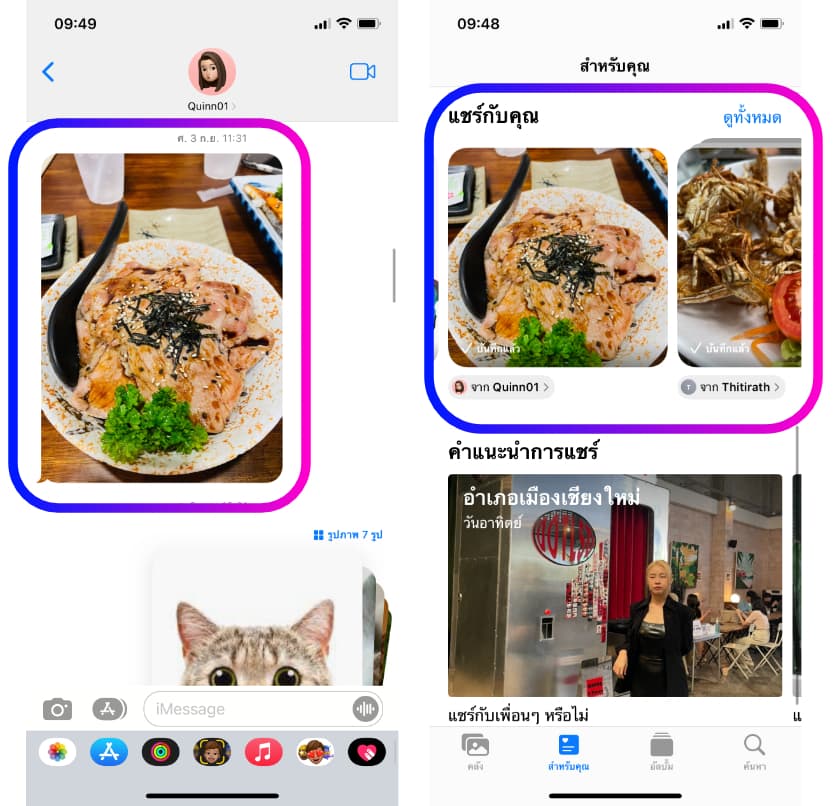 เมื่อมีคนแชร์รูปภาพมาให้เราในแอปข้อความ รูปภาพนั้นก็จะปรากฏอยู่ในแอปรูปภาพใน iPhone ของเรา