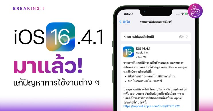 Apple ปล่อย iOS 16.4.1 ให้ผู้ใช้ทั่วไปอัปเดตแล้ว! โดยในเวอร์ชันนี้หลัก ๆ เน้นแก้ปัญหาต่าง ๆ ผู้ใช้ทั่วไปอัปเดตได้เลยที่ Software Update