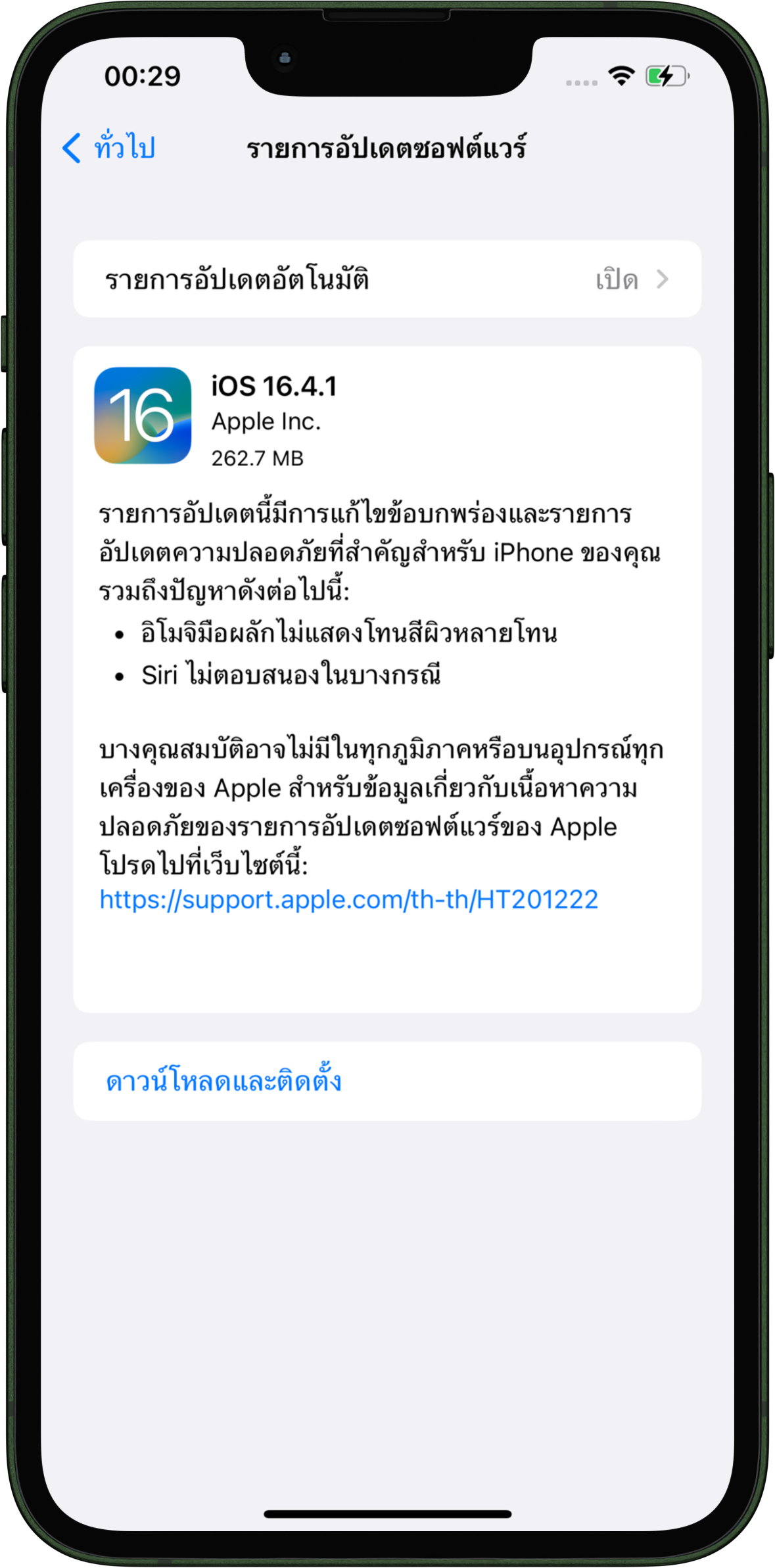 ผู้ใช้อุปกรณ์ที่รองรับ อัปเดตเป็น iOS 16.4.1 ได้เลยที่ Software Update