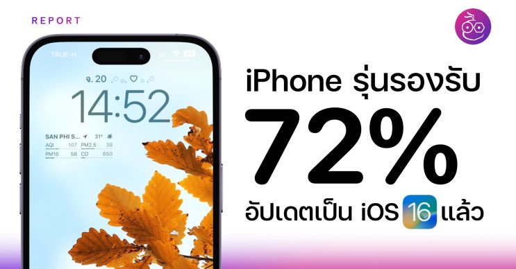 - 72% ของ iPhone รุ่นรองรับ อัปเดตเป็น iOS 16 แล้ว