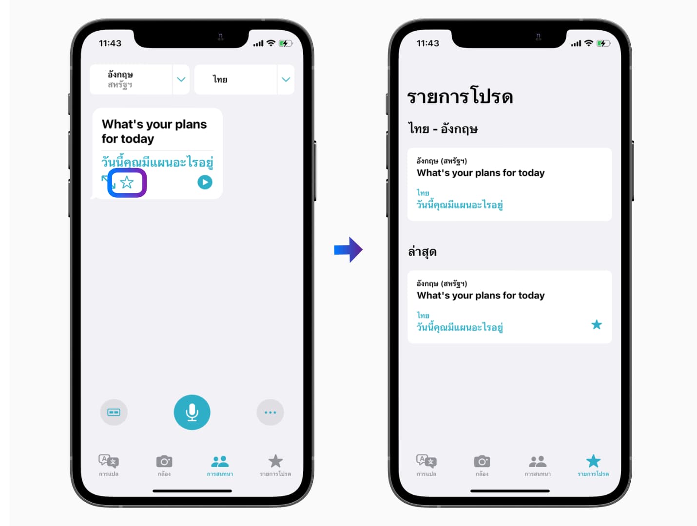 การเพิ่มการแปลในรายการโปรด