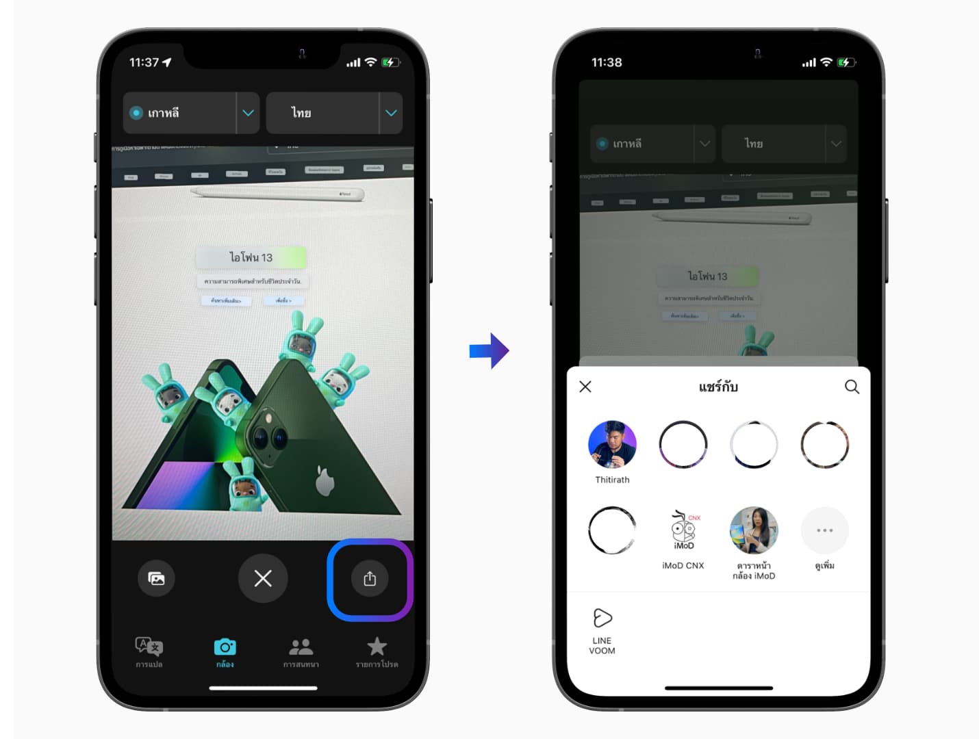 เราสามารถส่งต่อรูปภาพที่แปลเสร็จแล้วให้เพื่อนได้เพียงกดเครื่องมือการแชร์