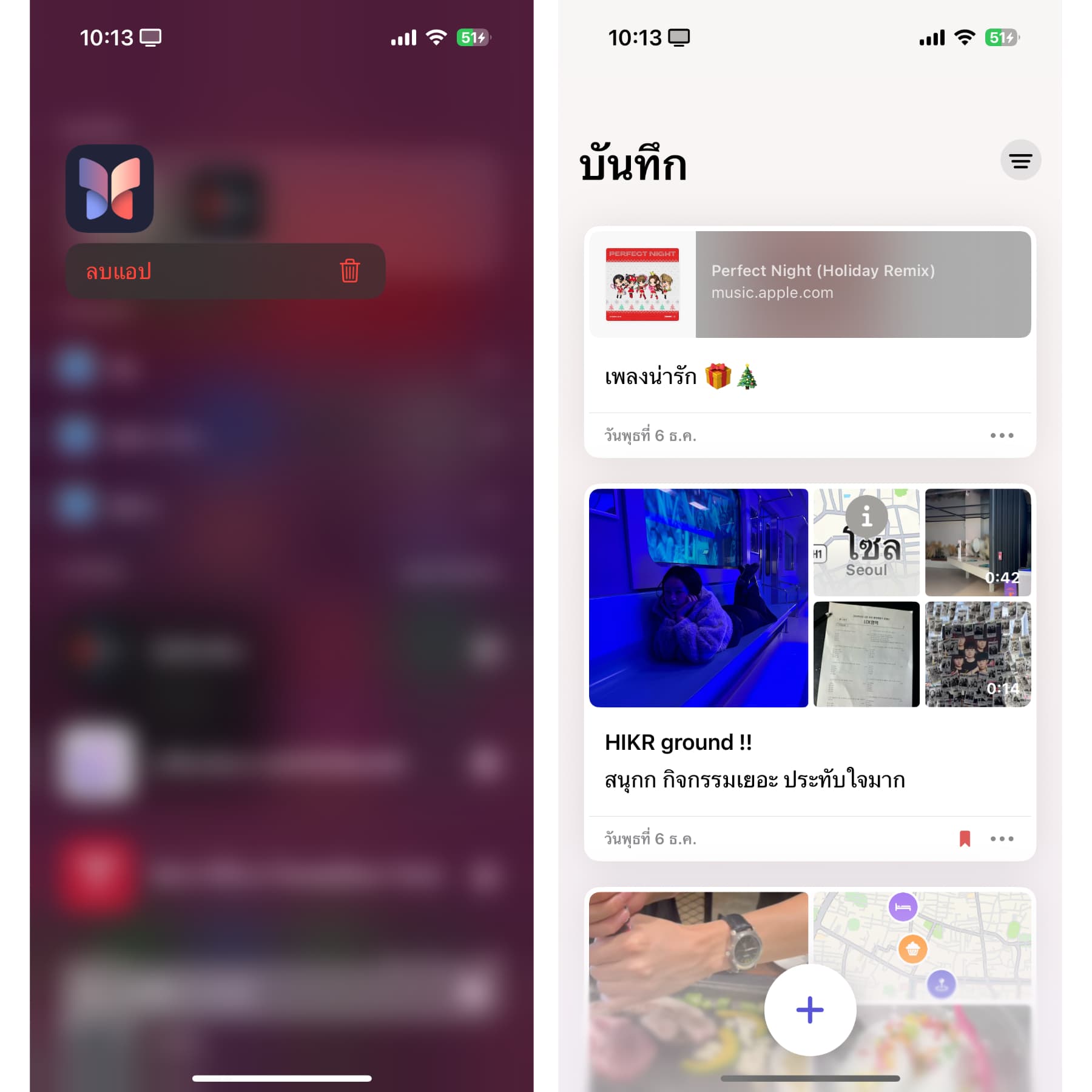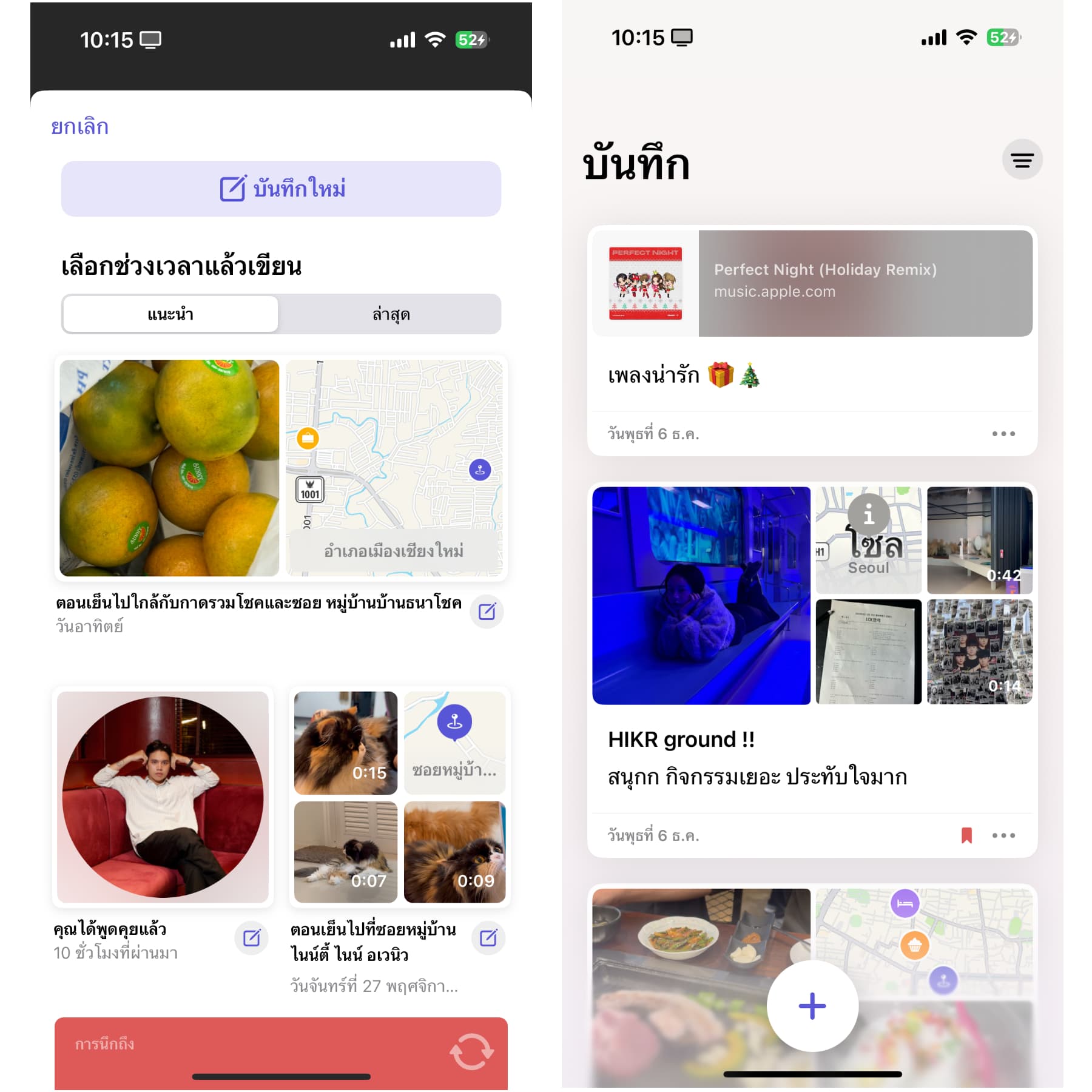 แตะที่เครื่องหมาย + เพื่อเริ่มเขียนบันทึก โดยสามารถเลือกรูปภาพ วิดีโอ ใส่เสียงบันทึก และตำแหน่งที่ตั้งได้ด้วยตัวเอง
