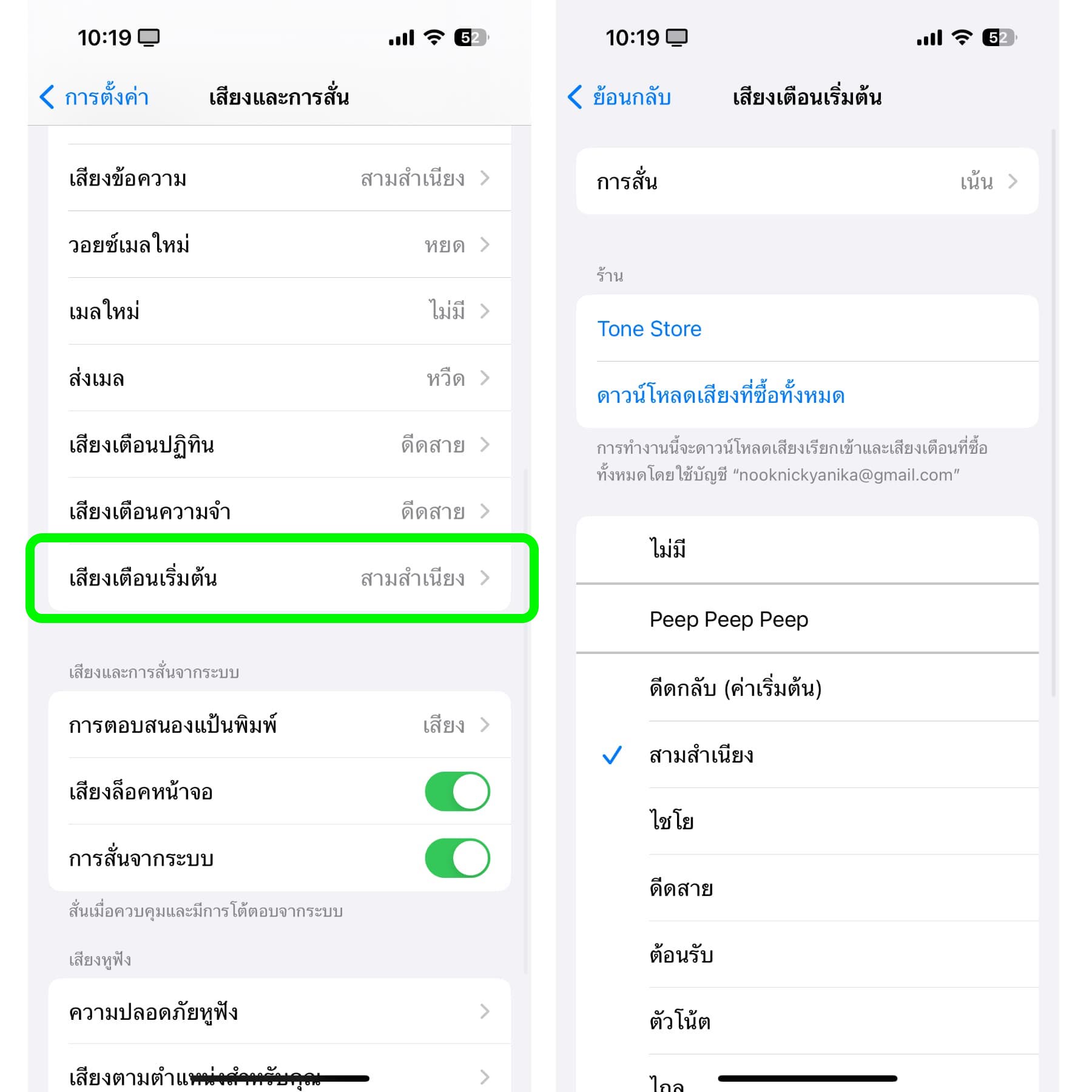 ตั้งค่าเสียงเตือนเริ่มต้น ทำได้โดย