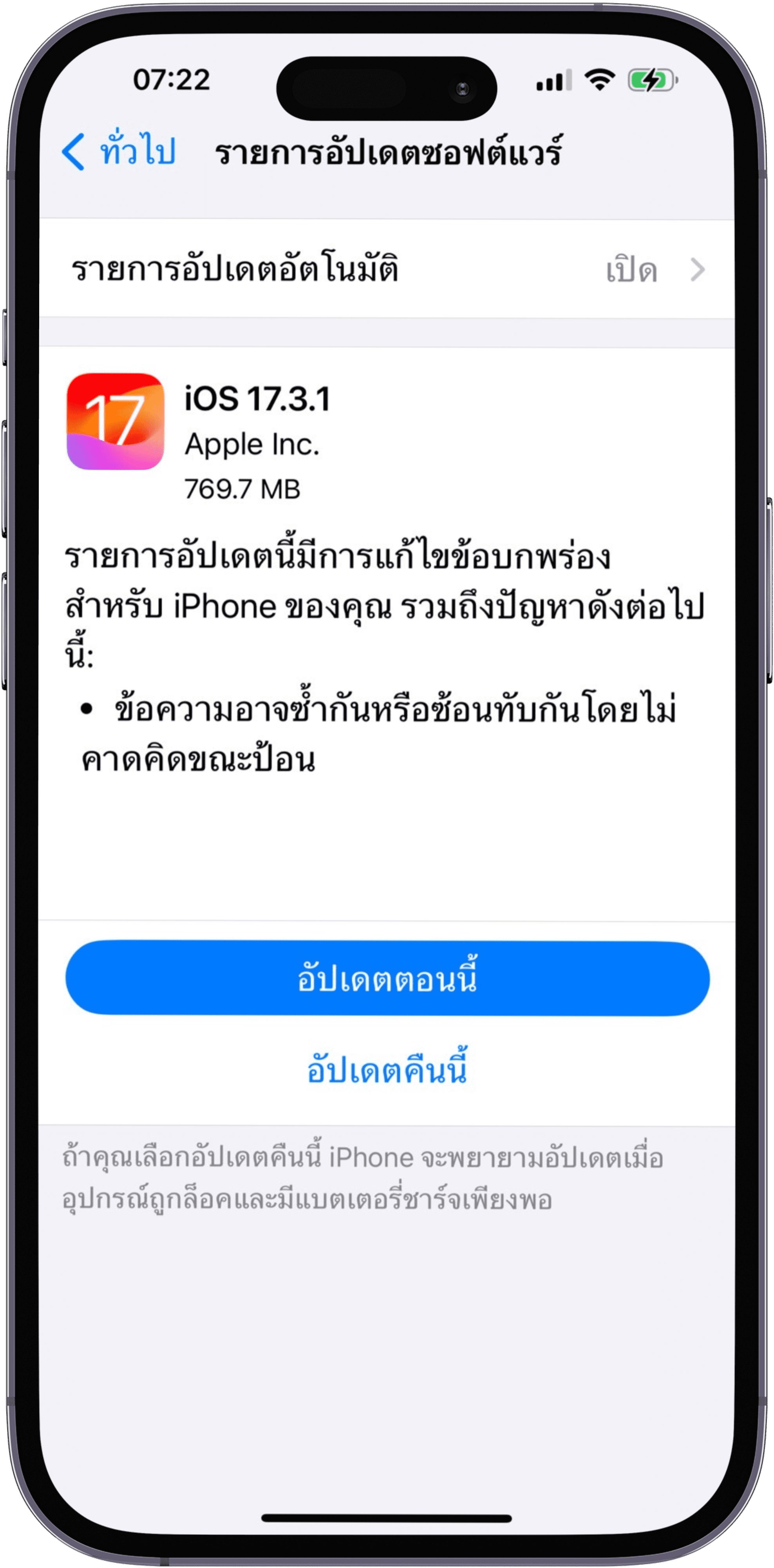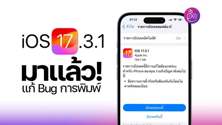Apple ได้ปล่อย iOS 17.3.1 ให้ผู้ใช้ทั่วไปอัปเดตแล้ว มาพร้อมการแก้ปัญหาข้อความอาจซ้ำกันขณะพิมพ์ ผู้ใช้อุปกรณ์รองรับ อัปเดตได้เลย