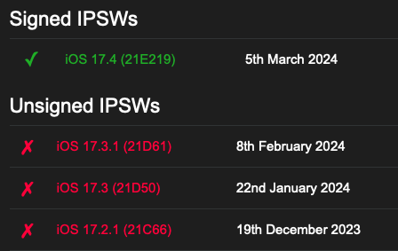 Apple ปิด ไม่ให้ดาวน์เกรดกลับไป iOS 17.3.1 ทำให้ผู้ใช้ที่อัปเดตเป็น iOS 17.4 ไปแล้วจะไม่สามารถดาวน์เกรดกลับไปติดตั้ง iOS 17.3.1 ได้อีกต่อไป