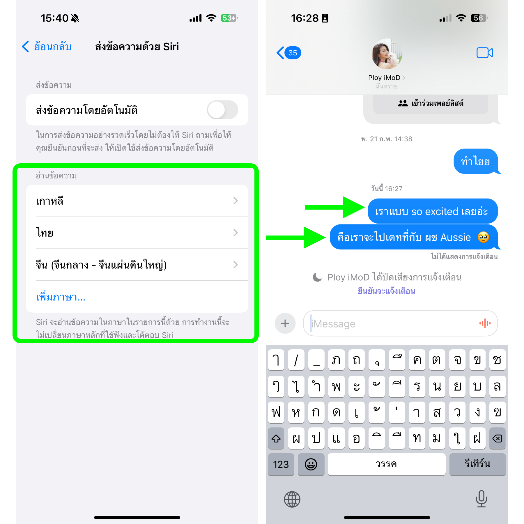 เข้าไปเพิ่มภาษาได้ที่ การตั้งค่า > Siri และการค้นหา > ส่งข้อความด้วย Siri > เลือกเพิ่มภาษาที่เมนู “อ่านข้อความ”