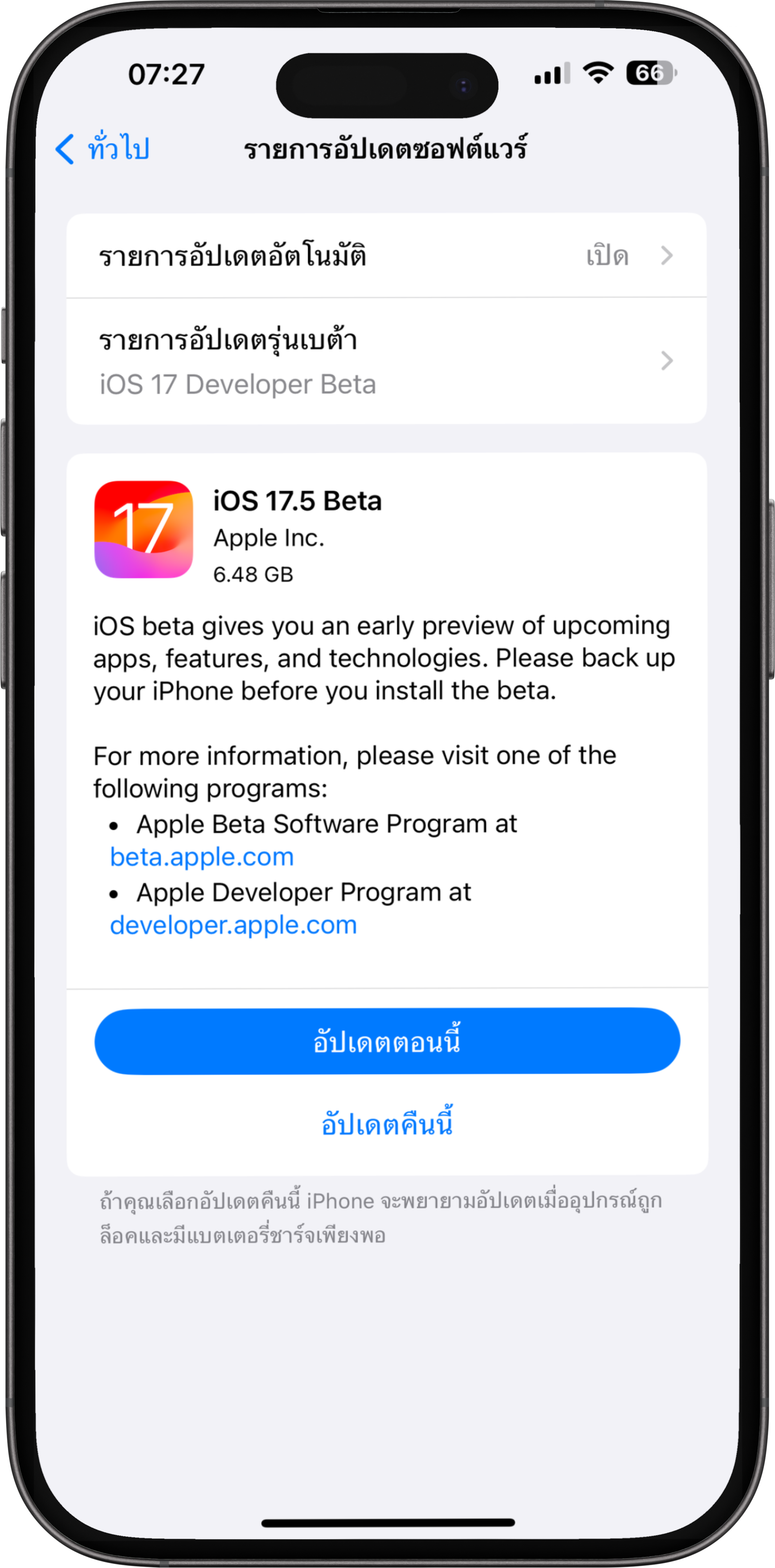 iPhone รุ่นที่รองรับ iOS 17.5 Beta