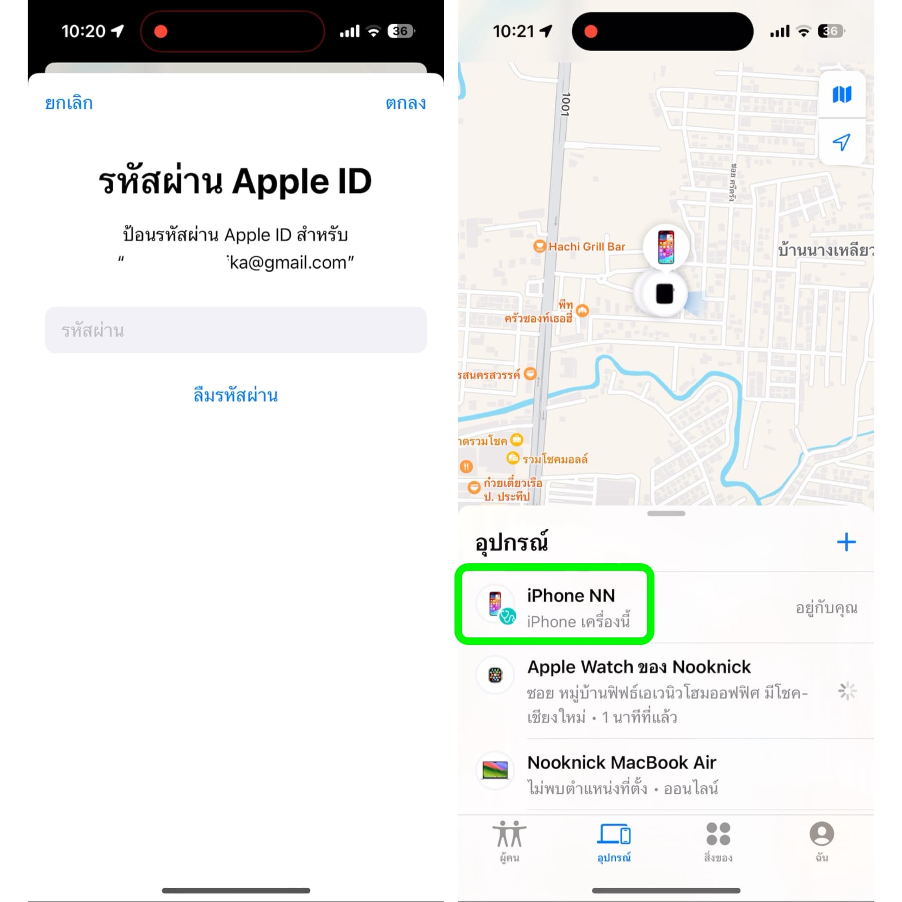 วิธีเปิดใช้งาน ให้เข้าไปที่แอปค้นหาของฉัน > ที่ชื่อ iPhone ของคุณจากรายการอุปกรณ์ ให้ปัดไปทางซ้าย จะมีไอค่อนถังขยะสีแดงปรากฏขึ้นมา > แตะที่ไอค่อนถังขยะจะมีหน้าต่างปรากฏขึ้นมา ให้แตะ “ดำเนินการต่อ”