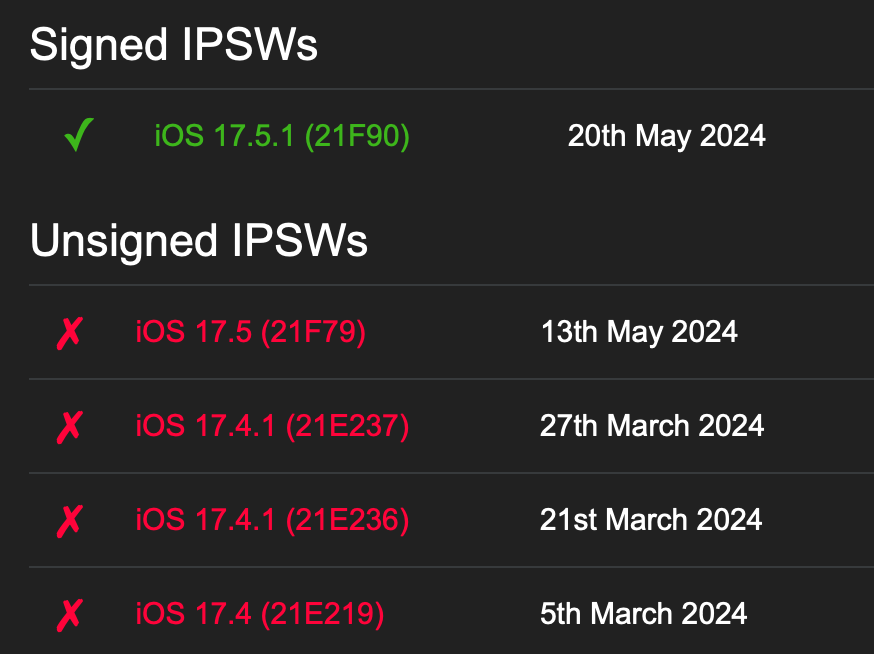 Apple ปิดไม่ให้ดาวน์เกรดกลับไป iOS 17.5 ทำให้ผู้ใช้ที่อัปเดตเป็น iOS 17.5.1 ไปแล้วจะไม่สามารถดาวน์เกรดกลับไปติดตั้ง iOS 17.5 ได้อีกต่อไป
