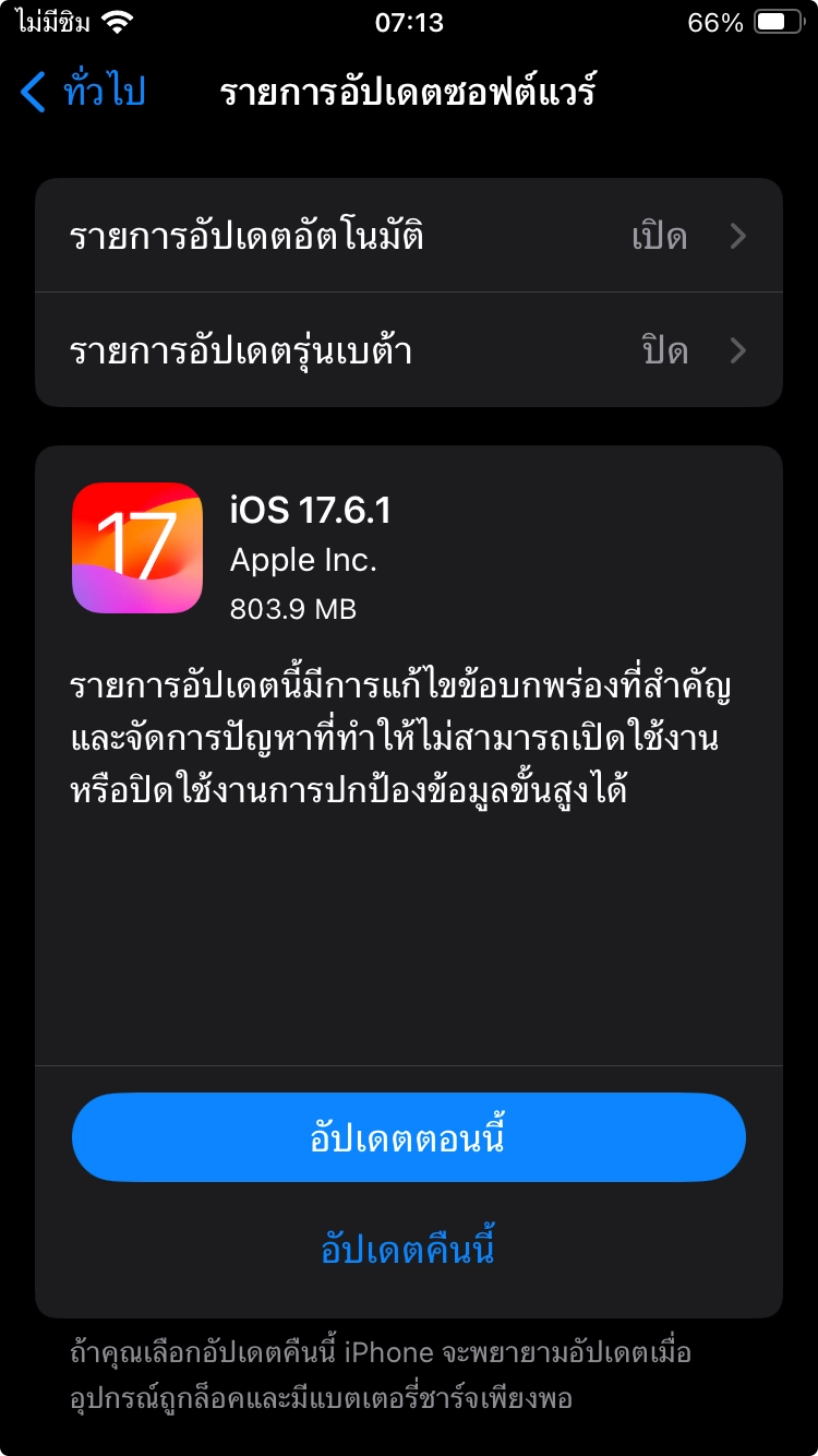 อัปเดตเป็น iOS 17.6.1