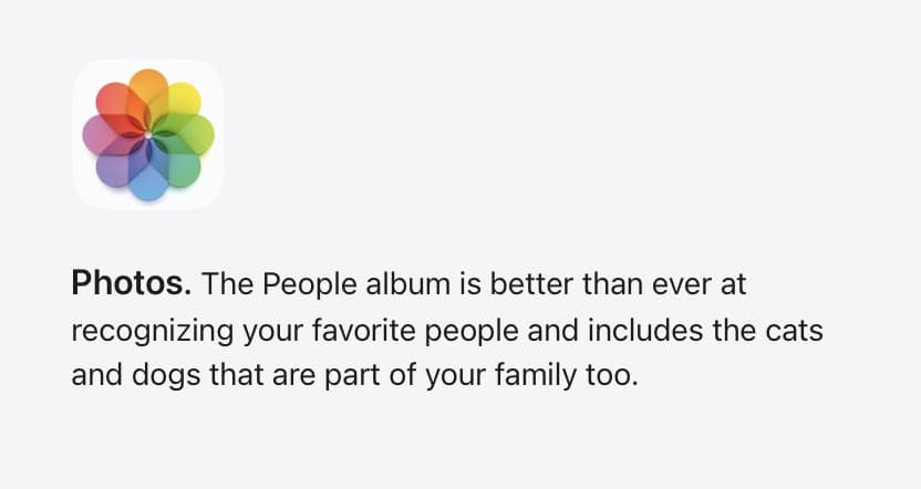 อัลบั้มรูปภาพแยกเป็นรายบุคคล ตรวจจับจากใบหน้า แถมยังมีการแยกอัลบั้มรูปภาพเพื่อเก็บรูปภาพสัตว์เลี้ยงของเราให้อัตโนมัติ
