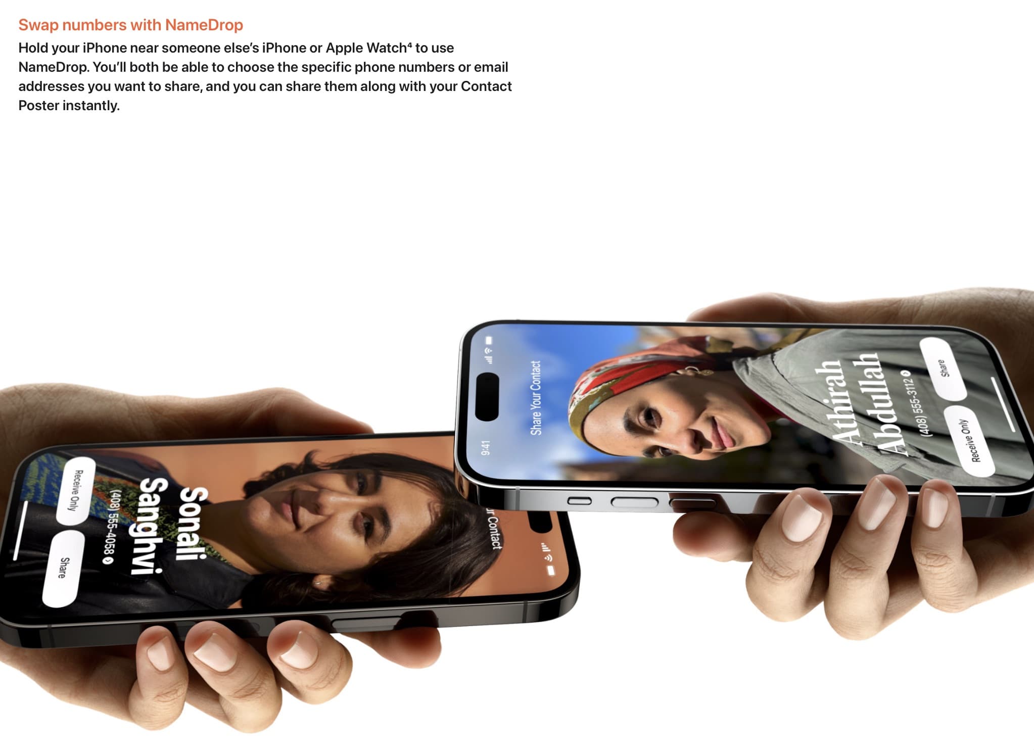 โปสเตอร์ของรายชื่อ คล้าย ๆ บัตรรายชื่อที่เราปรับแต่งเองได้ แชร์ให้คนอื่นได้ด้วย ในนั้นก็จะมีข้อมูลการติดต่อของเรา เบอร์โทร อีเมล ที่อยู่ รูปที่เราเลือกเองรวมถึงชื่อที่เราใส่เอง เวลามีคนมาขอคอนแทคก็แชร์ไปทั้งบัตรได้เลย