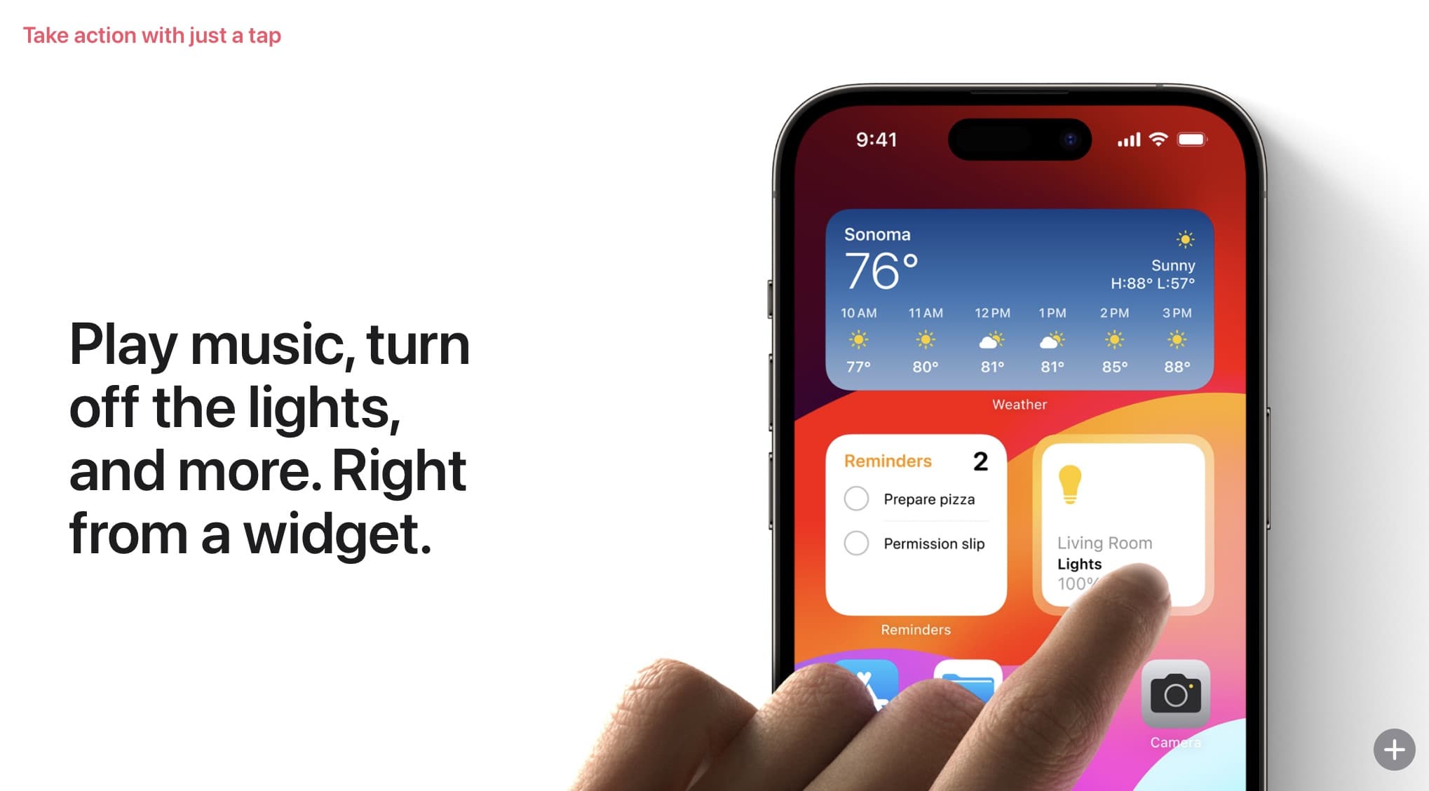วิดเจ็ตบนหน้าจอโฮมที่โต้ตอบได้มากขึ้น สั่งการทำงานของแอปต่าง ๆ ได้จากวิดเจ็ตบนหน้าจอโฮมได้เลย เช่นกดเล่นเพลงโปรดจากบนวิดเจ็ต Apple Music ได้เลย