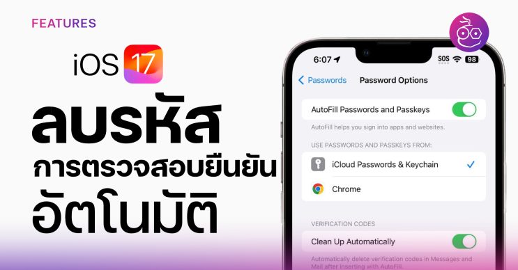 iOS 17 เพิ่มฟีเจอร์ การลบรหัสการตรวจสอบยืนยัน (Verification code) จากเว็บไซต์หรือแอปต่าง ๆ ที่ส่งเข้ามาในแอปข้อความให้อัตโนมัติ