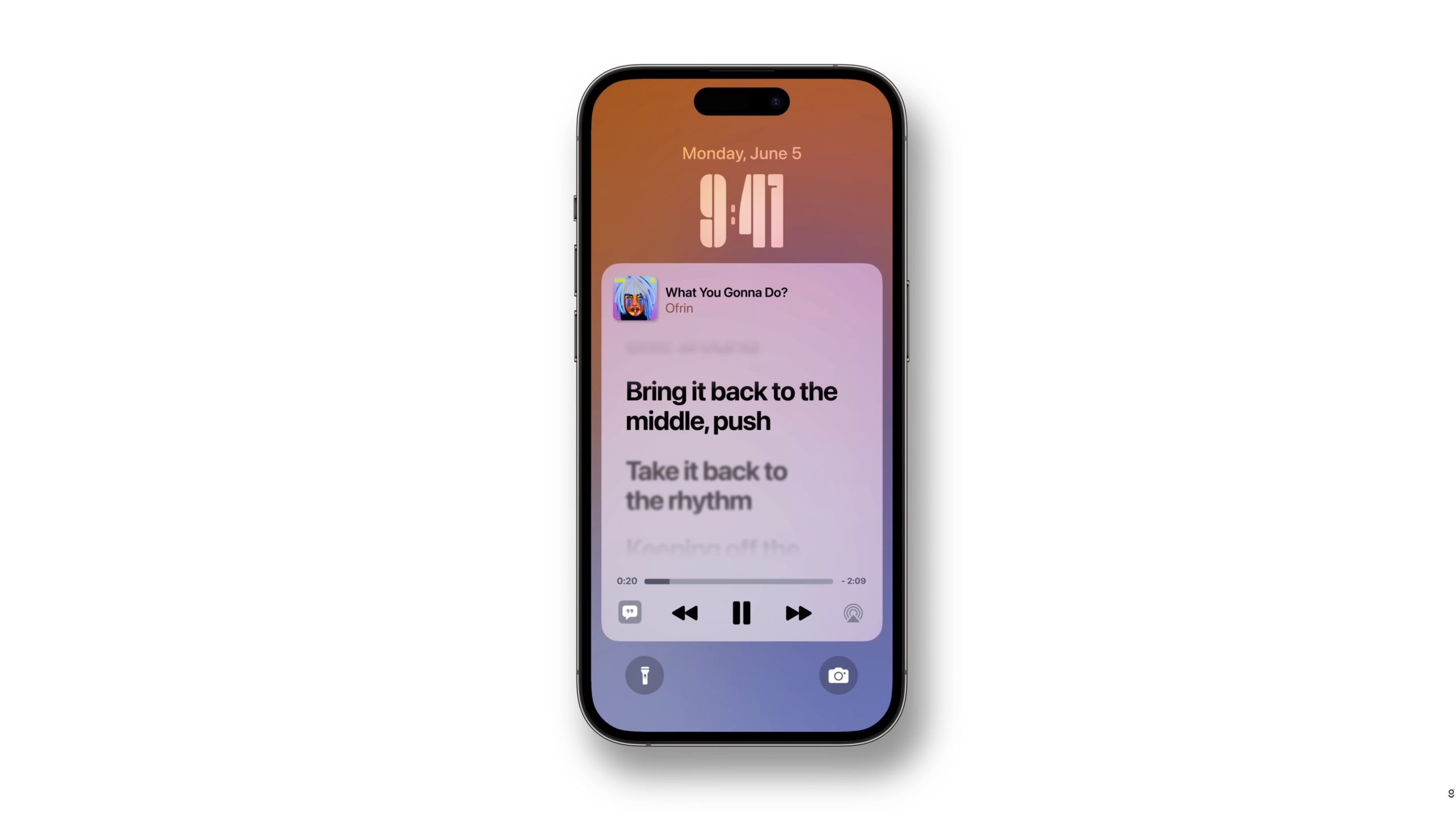 ในหน้าจอล็อคนี้ก็ยังสามารถแสดงผลเนื้อเพลง Apple Music แบบเรียลไทม์ได้ด้วย โดยไม่ต้องปลดล็อคเครื่อง