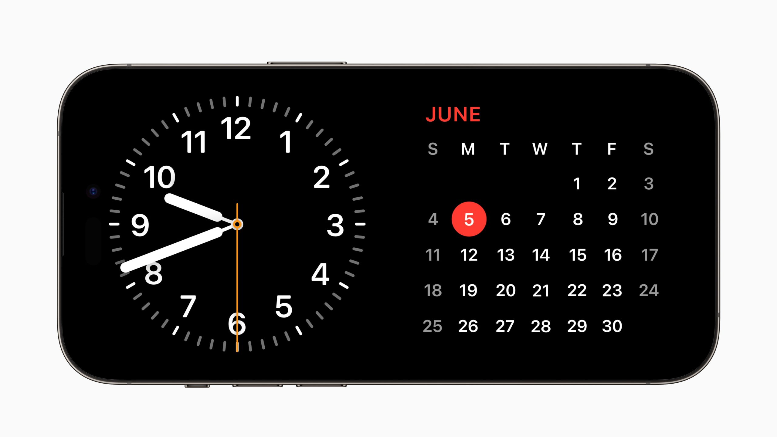 โหมด Stand By เมื่อวางชาร์จ iPhone บนแท่นชาร์จ MagSafe แบบแนวนอน ก็จะพบกับหน้าจอ Stand By ที่ปรับแต่งได้หลายรูปแบบ เช่น แสดงนาฬิกา วิดเจ็ต ปฏิทิน รูปภาพ เป็นต้น