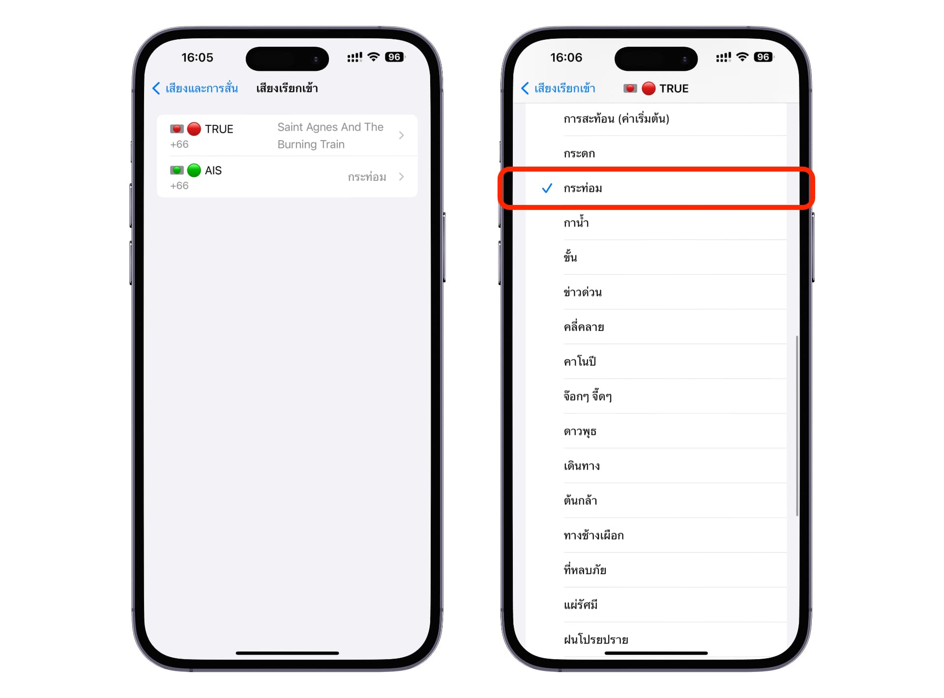 เลือกเบอร์ที่ต้องการ > เลือกใช้เสียงริงโทนตามต้องการได้เลย