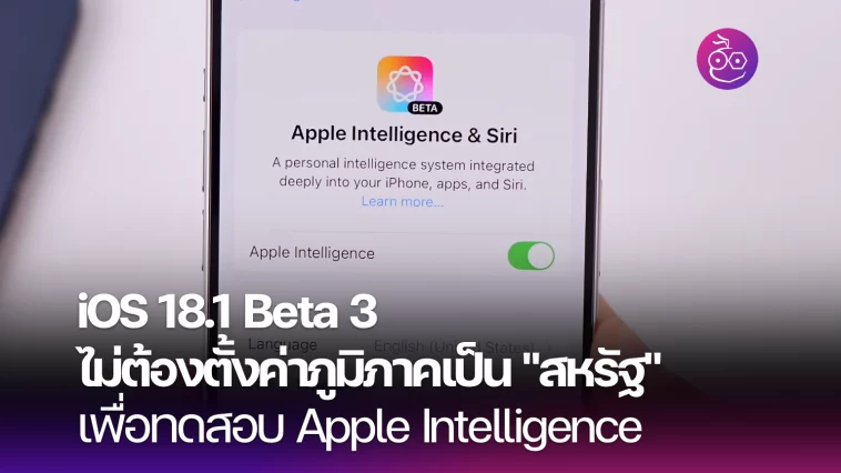 Apple ปล่อย iOS 18.1 Beta 3 ให้นักพัฒนาทดสอบ โดยเวอร์ชันนี้นักพัฒนาไม่จำเป็นที่ต้องตั้งค่าภูมิภาคตัวเครื่องให้เป็นสหรัฐ เพื่อทดสอบ Apple Intelligence แล้ว
