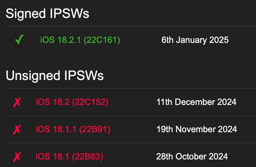 Apple ปิดไม่ให้ดาวน์เกรดกลับไป iOS 18.2 ทำให้ผู้ใช้ที่อัปเดตเป็น iOS 18.2.1 ไปแล้ว จะไม่สามารถดาวน์เกรดกลับไปติดตั้ง iOS 18.2 ได้อีกต่อไป