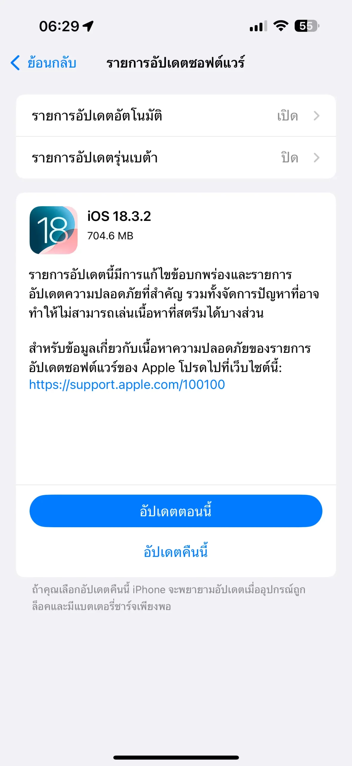 อัปเดตเป็น iOS 18.3.2