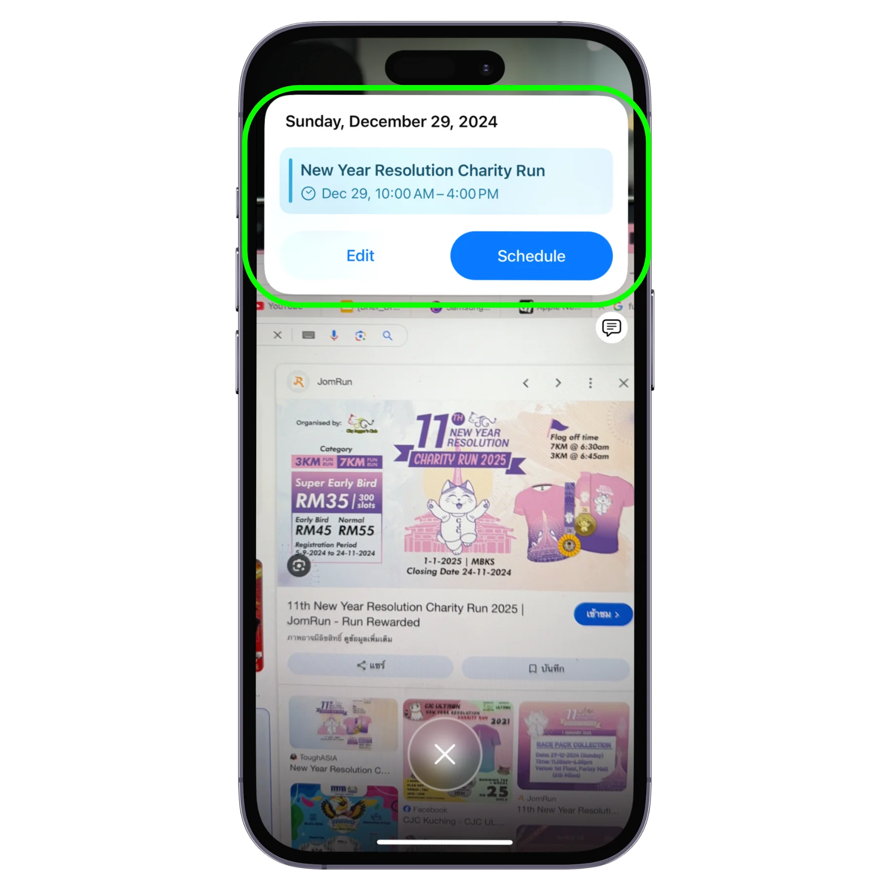 - ผู้ใช้ iPhone 16 ทุกรุ่น สามารถใช้ Visual Intelligence โดยการกดค้างที่ Camera Control แล้วส่องกล้องไปยังโปสเตอร์ ป้ายประกาศต่าง ๆ ที่มีกำหนดกิจกรรมได้ เพื่อเพิ่มกิจกรรมไปยังแอปปฏิทิน ได้โดยตรง