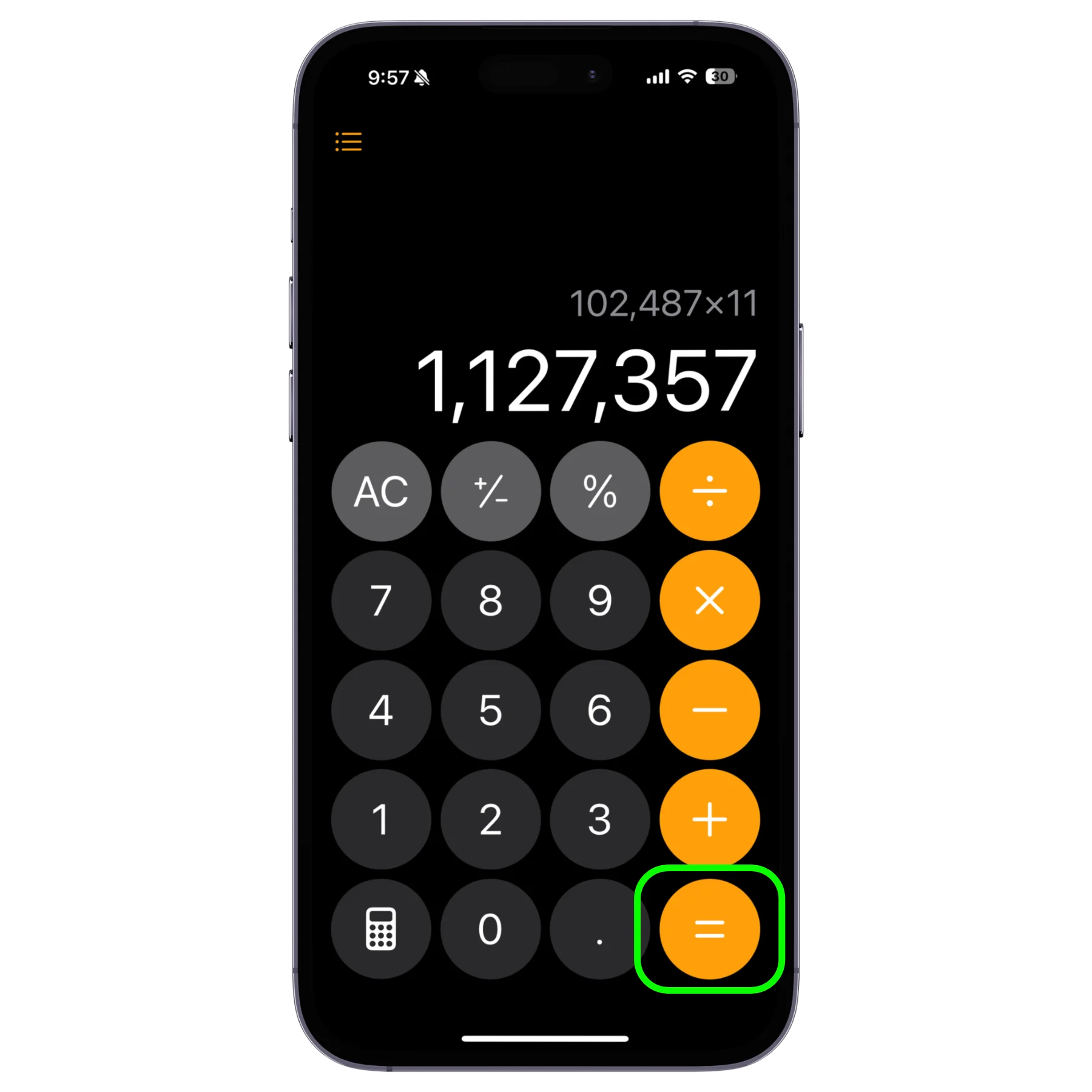 - เครื่องคิดเลขจะคำนวณซ้ำเมื่อแตะเครื่องหมาย “=” (เท่ากับ)